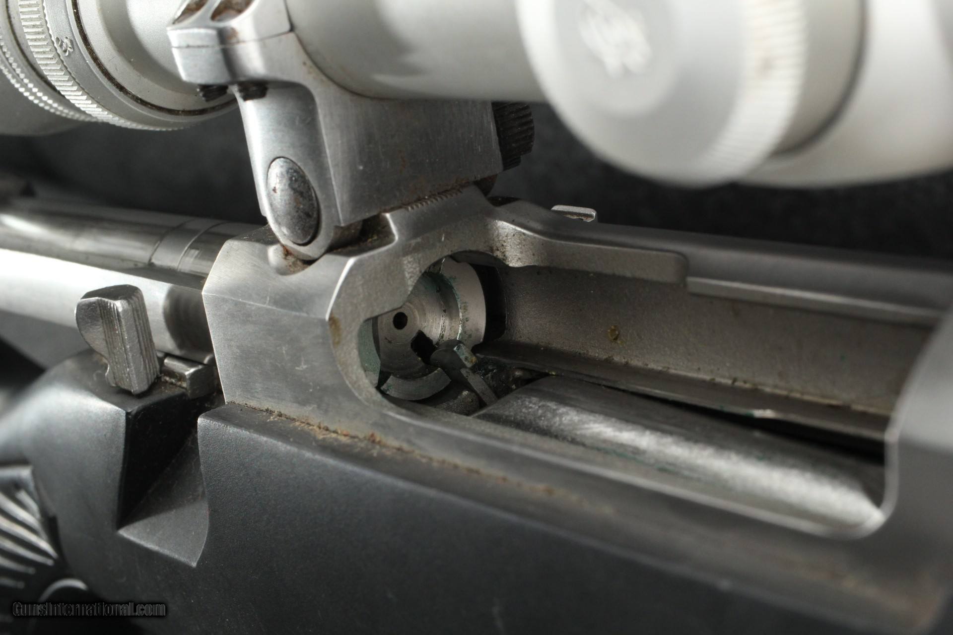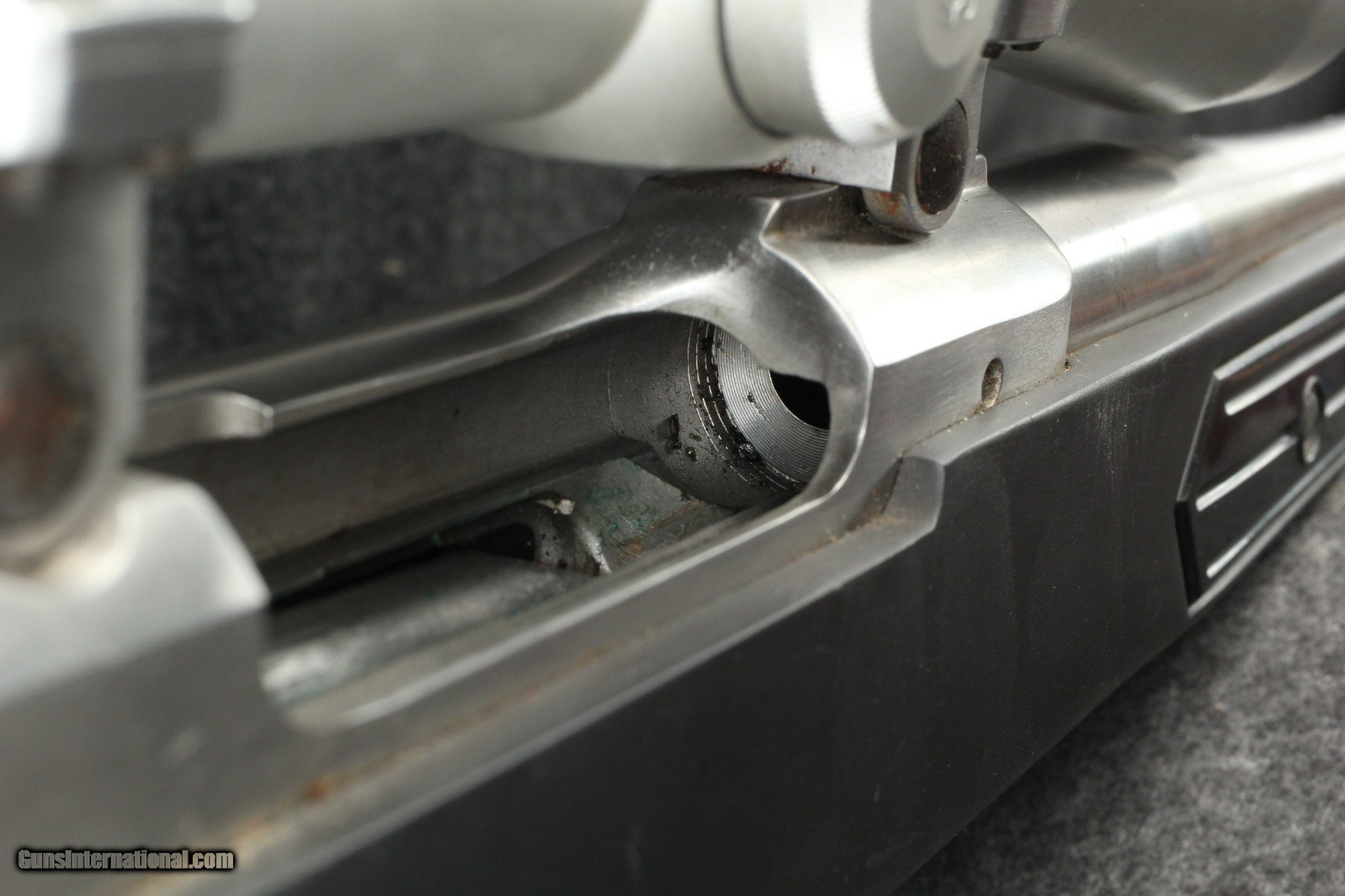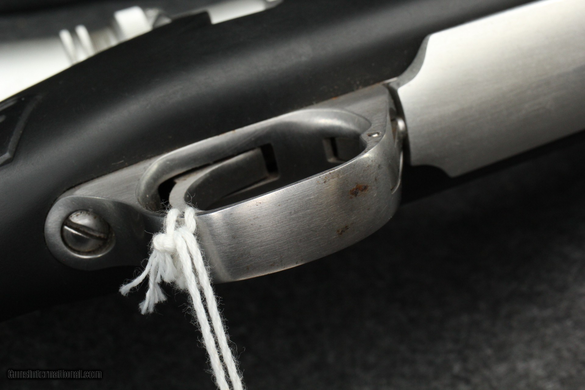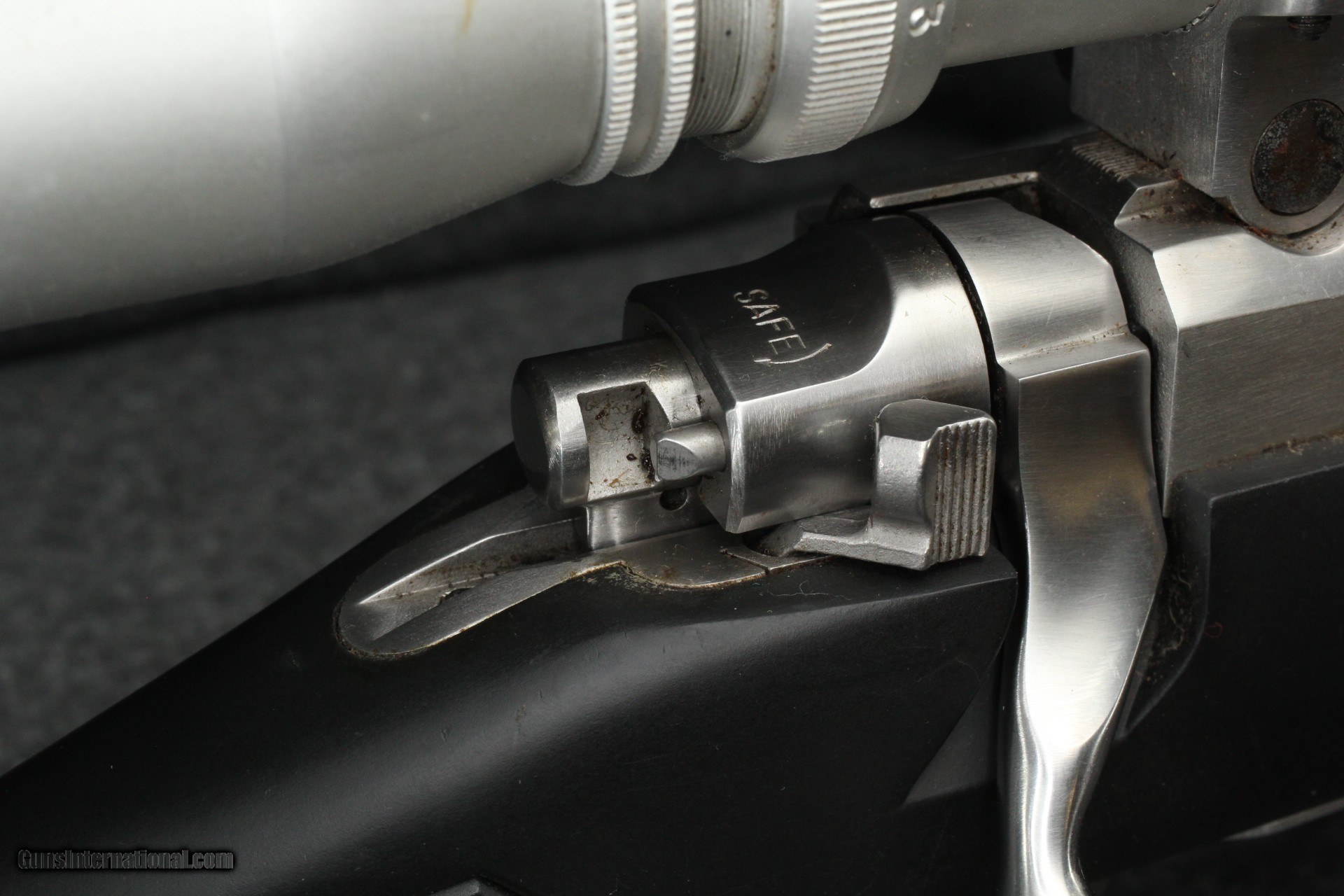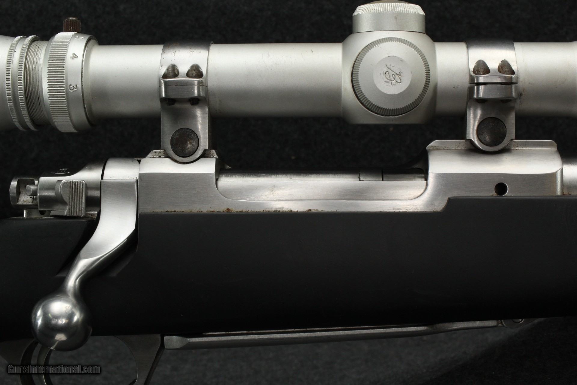 Description: 308 Win, serial number 780-641XX. Boat paddle stock, stainless. Overall in good condition, shows normal wear/use. Small areas of rust along entire length of barrel. Bore is excellent. Comes with Burris 3x9 Fullfield scope. More photos on request. Please add $45.00 for shipping and insurance. SOLD Rifle Caliber: .308 Winchester |