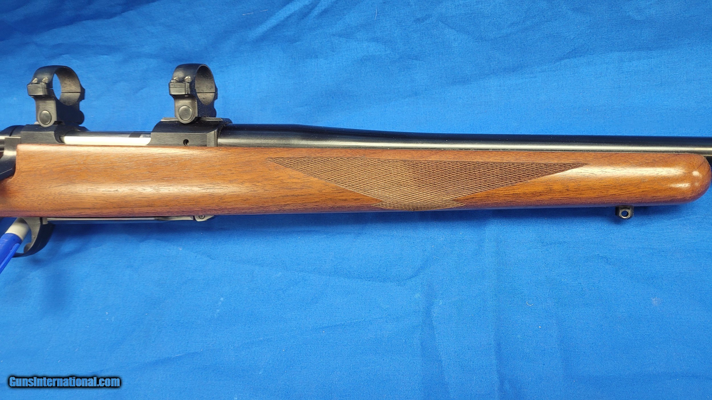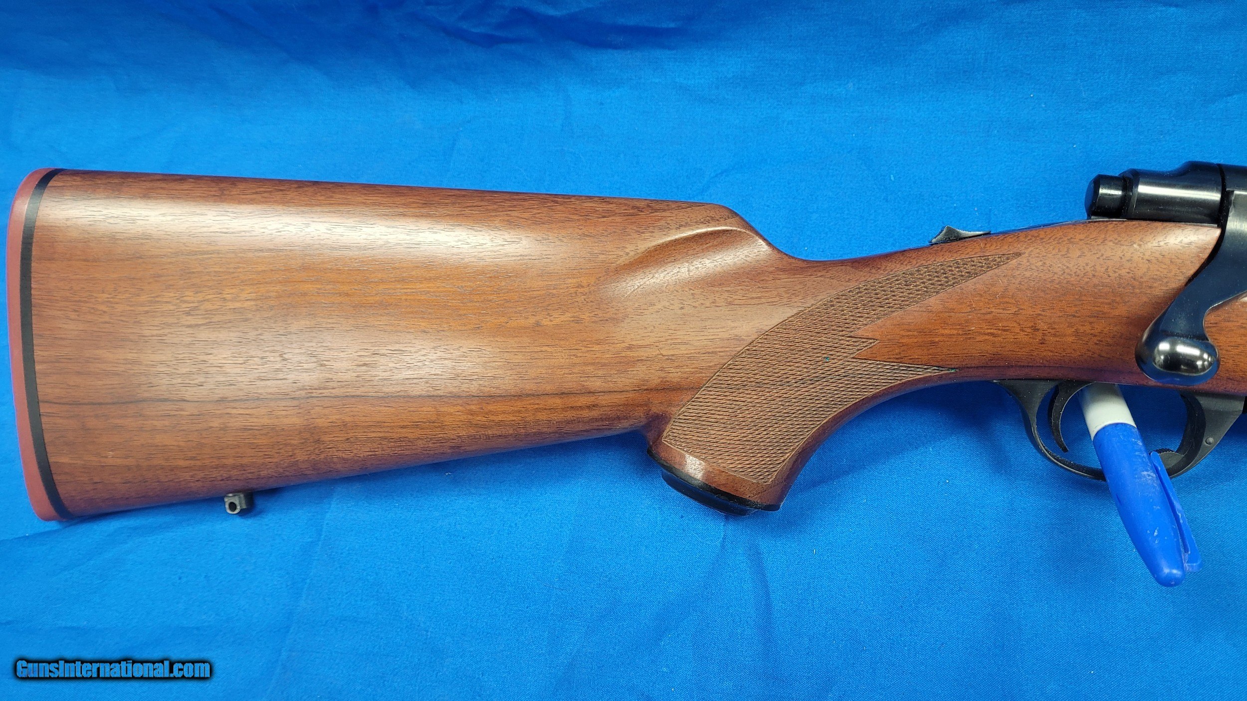 Description: Ruger M77 R in 308. First year of production, 3 digit serial number. Top tang safety. The gun is in very good shape. The finish on the right side of the grip is worn or very thin, and slightly worn on the left grip and it has a few safe marks other wise the wood is in very good shape. The barrel has one fine scratch towards the muzzle (see pictures) otherwise the metal is excellent. The orignal factory buttplate is still installed. I have tried to capture the stock finish issues and handling dings in the pictures, if you would like more or different pictures please ask. The rifle comes with the factory 1 inch rings. Shipping is a flat $60 CONUS, Alaska and Hawaii are extra. SOLD Rifle Caliber: .308 Winchester Manufacturer: Ruger Model: 77 Condition: excellent |