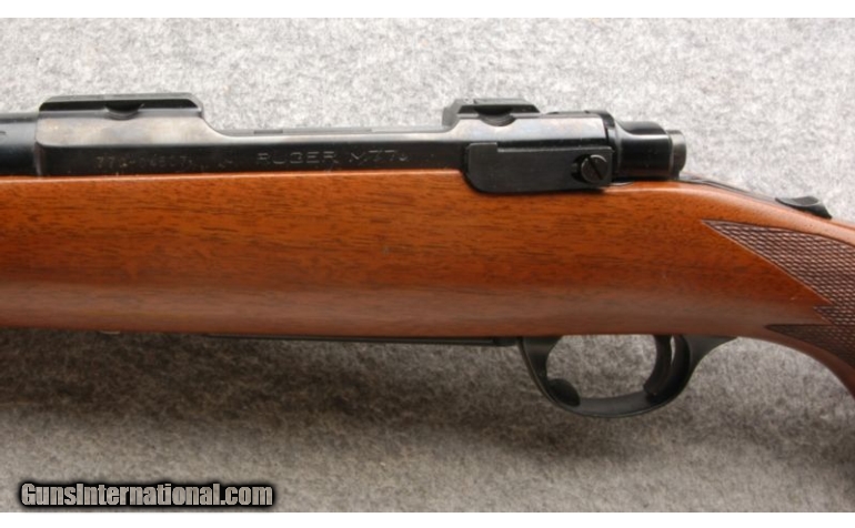 Description: This very hard to locate Ruger M77 RL is in .250-3000 savage. The rifle does not look like it has been fired outside of the factory. The package with the rings is still unopened. If you are a Ruger collector this would be a great addition. SOLD Manufacturer: 1985 Caliber Info: .250-3000 Savage. Chambers: Bolt action repeater. Metal Condition: As new. Wood Condition: As new. Bore Condition: As new. Barrels: 20 Inch round blue. Triggers: Single. Stock: Nice American walnut with some light and dark contrast and a checkered pistol grip with a steel grip cap. Stock Dimensions: 13 1/2 inch LOP. Fore End: Matching checkered walnut with a black top. Butt Pad: Red Ruger butt pad. Weight: 6 Lbs 6 Oz. Sights: Milled receiver for Ruger rings. (included) Extras: Comes with the factory box, factory rings and all the factory paperwork. Item Location: Owatonna, MN |