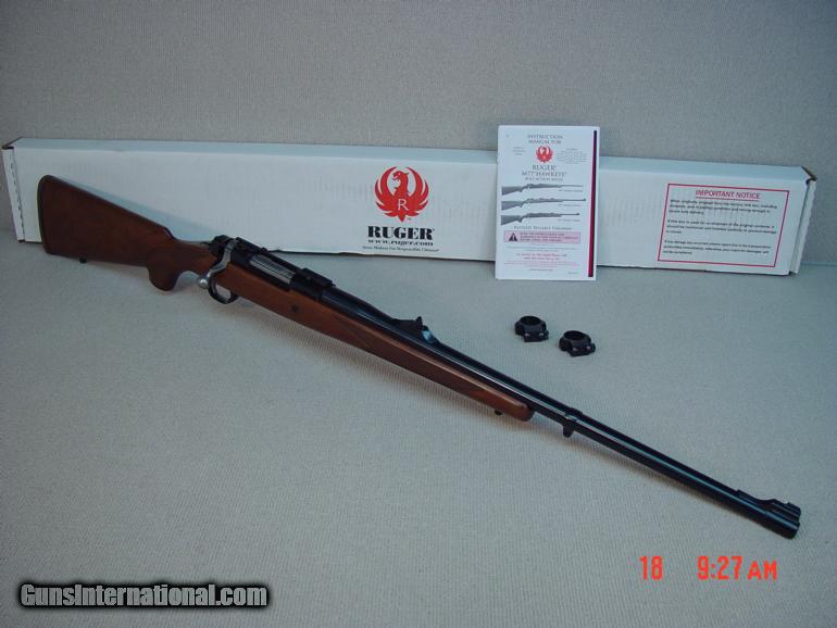 Description: FACTORY NEW IN THE BOX! RUGER BOLT ACTION RIFLE ... 223 Rem caliber ... 23" barrel ... 42 7/8" overall ... weight 8 lbs. 2 oz. ... LOP 13 7/8" over 1/2" recoil pad ... hinged floor plate ... adjustable 'V'-notch rear sight and glo-white front sight ... rifle comes with a set of Ruger scope rings ... trigger pull is factory set at 6 lbs. 8 oz. ... 3 sling attachment points. The satin blue barrel and receiver are mounted on a beautiful California walnut stock. The pistol grip features a cap with a Ruger eagle and the floor plate is covered with the Ruger logo. Deeply cut checkering covers the front & rear grip surfaces. This rifle comes new in the box with a gun lock, set of scope rings, ring mounting tool, owner's manual and all factory paperwork. Call with any questions and see our other listings for ... "Only the best!" (37158) (NOTE: the gun shown in the photos was selected at random and is representative of those in this shipment)