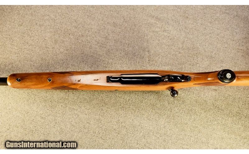 Description: This is a pre-owned Ruger model M77 RS African in .458 Winchester Magnum with a tang safety manufactured in 1975 .458 Winchester Magnum SOLD Metal Condition: "Very good overall with a few small scratches, scattered freckling on the barrel and a small patch of pitting on the floor plate Wood Condition: "Quite good overall with a number of small scratches, dents and scrapes plus two larger scraped on the underside of the stock Bore Condition: Clean with bright lands Barrels: 24 Stock Dimensions: 13 1/2" LOP Fore End: Checkered walnut Butt Pad: Red Ruger pad Weight: 9 lbs. Sights: "Beaded blade front, folding rear plus integral Ruger bases Item Location: Glendale, AZ |