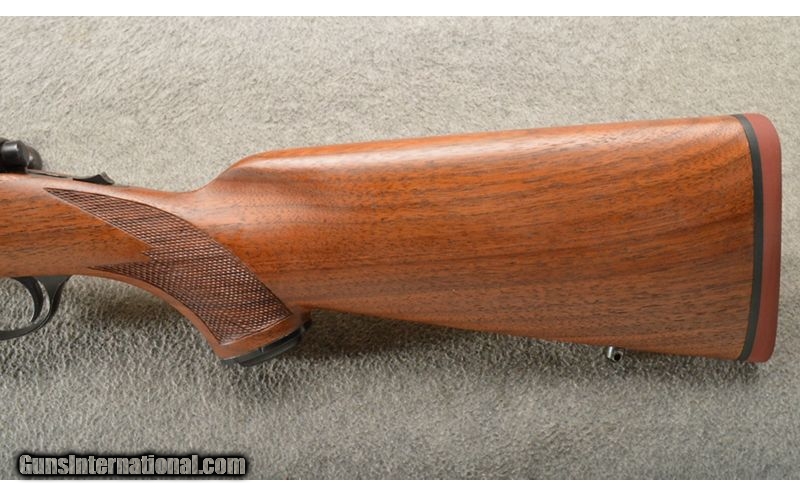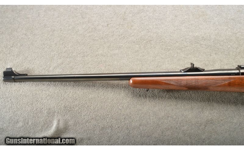 Description: This is a very nice and hard to find Ruger M77 S Round Top made in 1971. This is a hard to find Round Top model with gloss blue metal and nice walnut and sights. The blue is very strong and close to new looking. The walnut stock has a couple of very small blemishes but is close to new. This is a very nice hard to find rifle in great condition. .25-06 Remington SOLD Chambers: Bolt action repeater. Metal Condition: The blue is excellent with a touch of wear on the hollow bolt knob. Wood Condition: "There are a couple of very small marks, the wood has an oil finish. Bore Condition: Bright and shiny. Barrels: 24 Triggers: Single blue trigger. Stock Dimensions: 13 5/8" LOP. Fore End: Very nice walnut with checkering and a sling stud. Butt Pad: "Matching walnut with a checkered pistol grip, grip cap, sling stud and a red rubber butt pad. Weight: 7 Lbs. 14 Oz. Sights: Adjustable folding rear and a blade on ramp front. Item Location: Owatonna, MN |