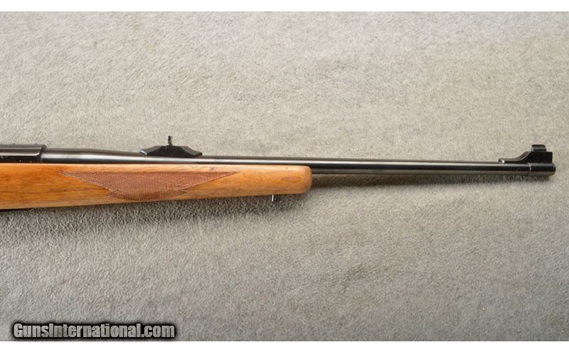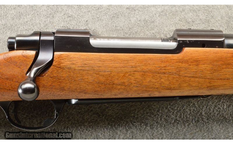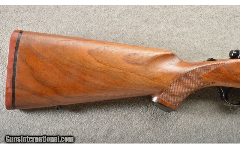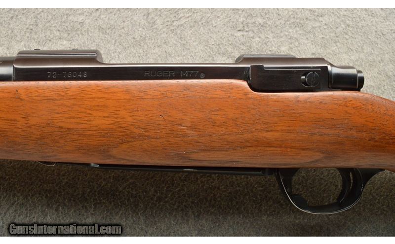 Description: This is a very nice and hard to find Ruger M77 S Round Top made in 1977. This is a hard to find Round Top model with gloss blue metal and nice walnut and sights. The blue is very strong with a few minor scratches on the floor plate and edge wear on the trigger guard. The walnut stock has small marks and the finish is getting a little thin in areas. This is a very nice hard to find rifle and won't last long. .270 Winchester SOLD Chambers: Bolt action repeater 4+1. Metal Condition: Shows very minor wear and small rust spots by the front sight and a few scratches on the floor plate. Wood Condition: "There are a few small dings, dents and thin scratches in the walnut. The finish is thinning some. Bore Condition: Bright and shiny. Barrels: 22" blue with sights. Triggers: Single blue trigger. Stock Dimensions: 13 5/8" LOP. Fore End: Nice but plain grain walnut with checkering and a sling stud. Butt Pad: "Matching walnut with a checkered pistol grip, grip cap, sling stud and a red rubber butt pad. Weight: 7 Lbs. 4 Oz. Sights: Adjustable folding rear and a blade on ramp front. Item Location: Owatonna, MN |