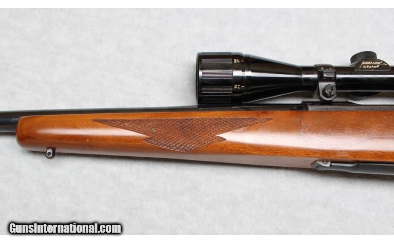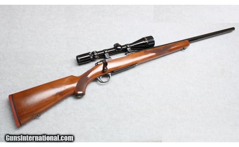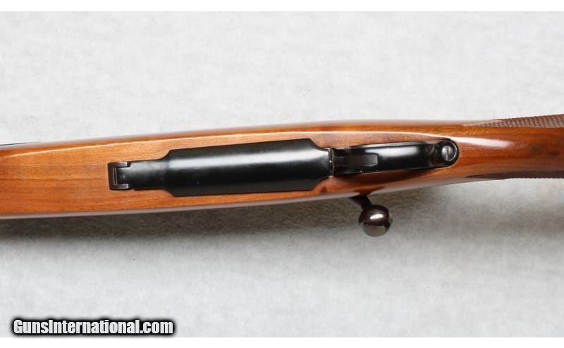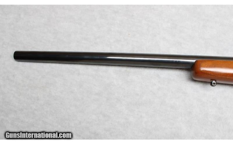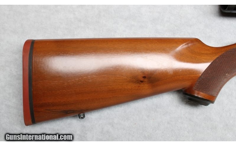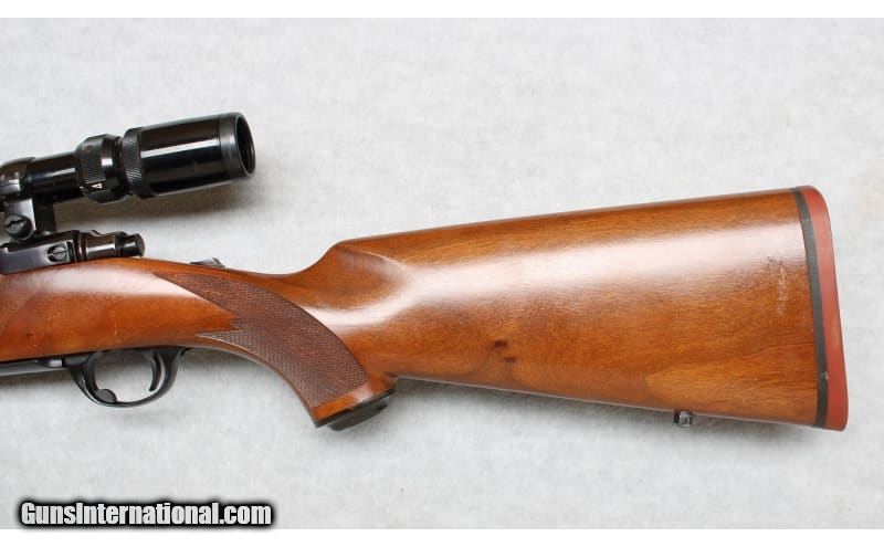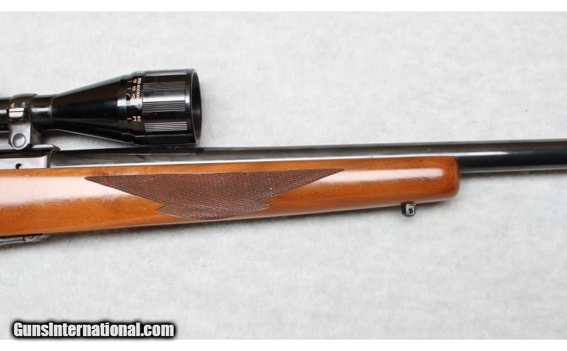 Description: Ruger M77 tang safety bolt action rifle chambered in .243 Winchester. This rifle comes with a 24-inch heavy barrel with a bright bore. It has a highly reliable Mauser-type controlled round feed extractor, a tang safety, recessed target crown, and a cold hammer-forged barrel. It has integral scope mounts, machined directly on the solid-steel receiver. It has a single piece walnut stock with checkering on the forearm and wrist along with a Ruger grip cap and rubber recoil pad. Built in 1977. The .243 Winchester is a popular sporting rifle cartridge. Based on a necked down .308 Winchester, it is a versatile short action cartridge used to hunt both medium game and small game alike. .243 Winchester SOLD Metal Condition: Excellent Wood Condition: Very good with handling marks Bore Condition: Bright Barrels: 24" Heavy barrel Triggers: Factory Stock Dimensions: LOP 13 3/4 Inches Fore End: Checkered walnut Butt Pad: Rubber pad Sights: Bushnell Banner 4-12x 40 Scope Item Location: La Vista, NE |