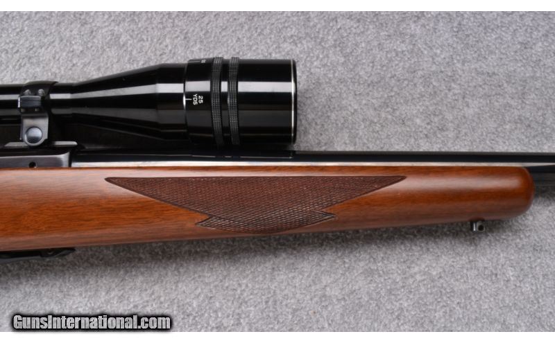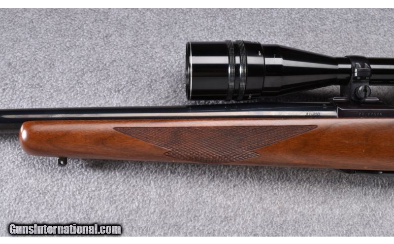 Description: Wood shows a few light storage marks. Blue and bore remain excellent. Complete with a Tasco 6x-24x optic. SOLD Manufacturer: S/N 78-27XXX Caliber Info: .22-250 Metal Condition: Excellent Wood Condition: Very Good Bore Condition: Excellent Barrels: 24" Heavy Triggers: Factory Stock: Checkered Walnut Pistol Grip with Black Cap Stock Dimensions: 13 3/4" LOP Fore End: Checkered Walnut Butt Pad: Red Rubber Weight: 10 LB Sights: Tasco 6x-24x Optic Item Location: Wheeling, WV |