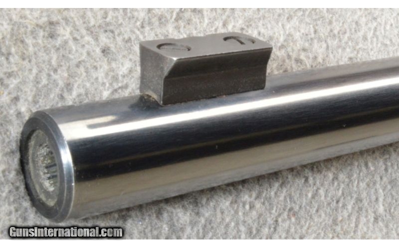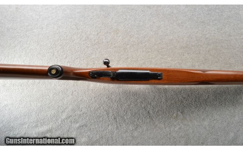 Description: This is a nice field used Ruger M77 Varmint rifle in .308 Win. The rilfe has a Tang safety, Red pad and a front target block. The blue is very good with a few small spots. The walnut stock has scattered dings and dents as well as a few small chips missing behind the upper tang. The trigger has been replaced and there are 2 holes drilled into the receiver. With that being said this is still a very nice rifle. SOLD Manufacturer: 1981 Caliber Info: .308 Winchester. Chambers: Bolt action repeater. Metal Condition: Very good with very minor spotting. Wood Condition: Good with a few chips and small dings. Bore Condition: Excellent. Barrels: 24 inch blue heavy barrel with a front target block. Triggers: Replacement trigger with a 2 LB trigger pull. Stock: Walnut with a checkered pistol grip. Stock Dimensions: 13 1/2 inch LOP. Fore End: Matching checkered walnut. Butt Pad: Red Ruger rubber butt pad. Weight: 8 Lbs 12 Oz as pictured. Sights: Comes with a set of Ruger scope rings and a front target block. Extras: Comes with a set of Ruger scope rings. Item Location: Owatonna, MN |