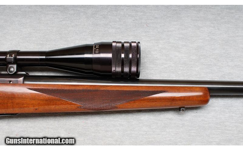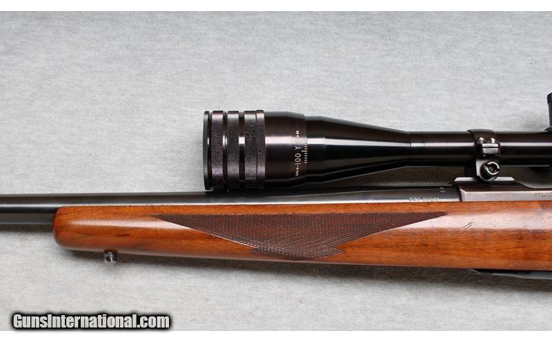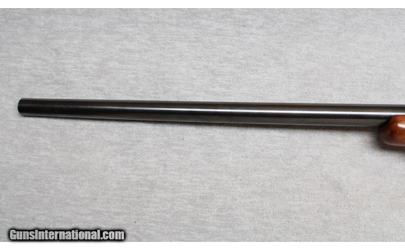 Description: Ruger M77 in .220 Swift. This is a very nice bolt-action, magazine-fed, Mauser style action rifle. The action is mated to a heavy varmint barrel and in set in a checkered walnut stock. The metal finish is excellent, and the stock is in very good condition with minor handling marks. Manufactured in 1984. The .220 Swift was developed and introduced in 1935 for small game and varmint hunting. It was the first factory-loaded rifle cartridge with a muzzle velocity of over 4,000 feet per second. This rifle has a Lyman 25 power LWBR Precision Benchrest scope with lens covers. .220 Swift SOLD Metal Condition: Excellent Wood Condition: Very good with handling marks Bore Condition: Bright Barrels: 26 Inches Triggers: Factory with aftermarket shoe Stock Dimensions: LOP 13 3/4 Inches Fore End: Checkered Walnut Butt Pad: Rubber pad Sights: Lyman 25 power LWBR Precision Benchrest scope with lens covers Item Location: La Vista, NE |