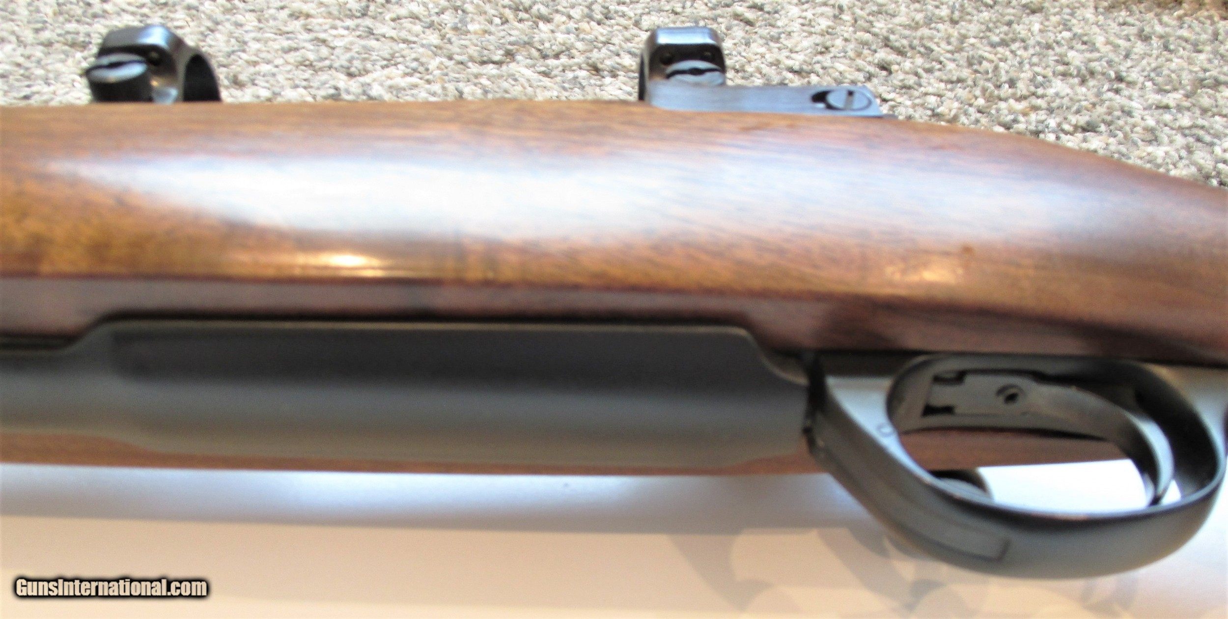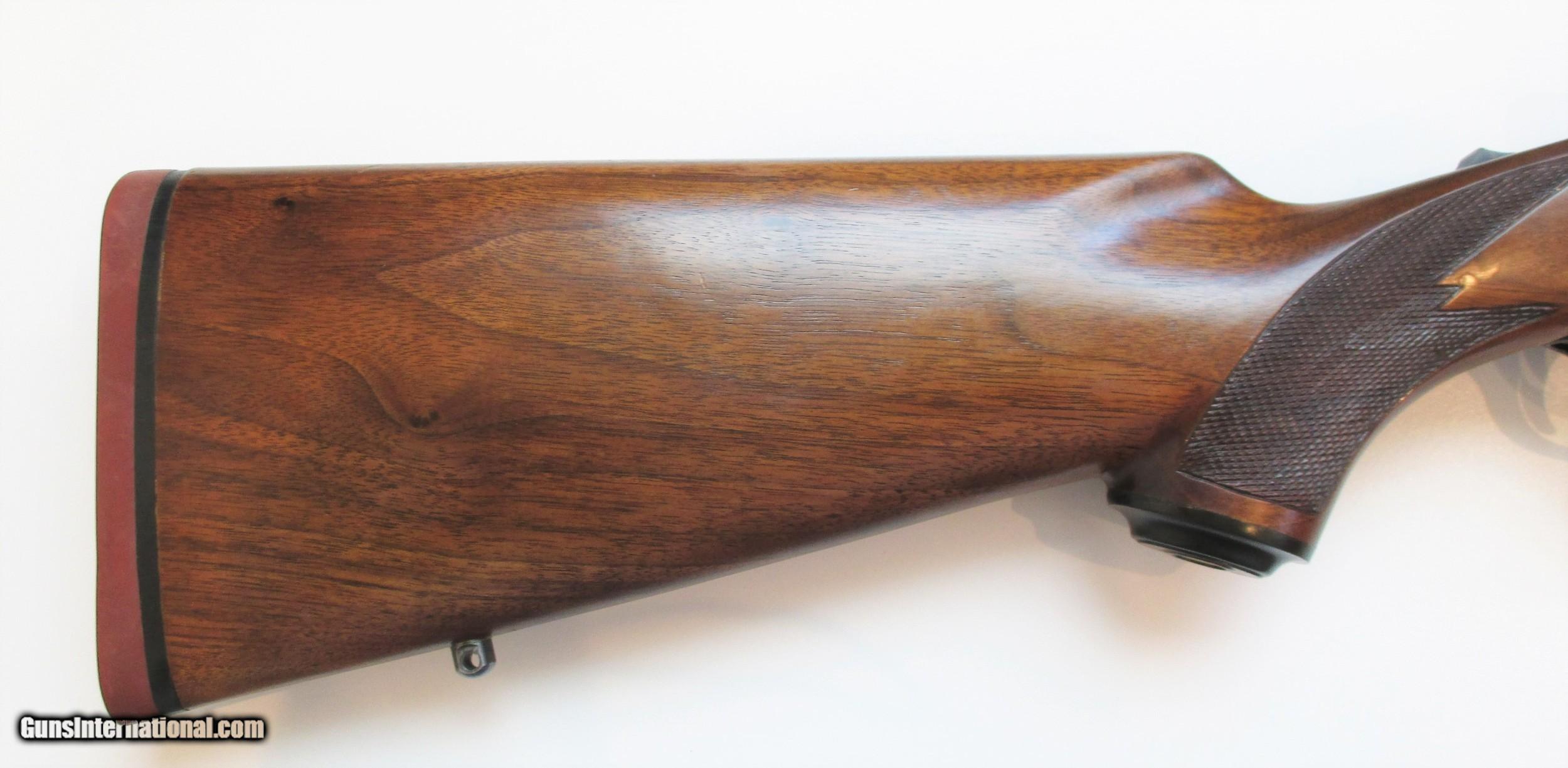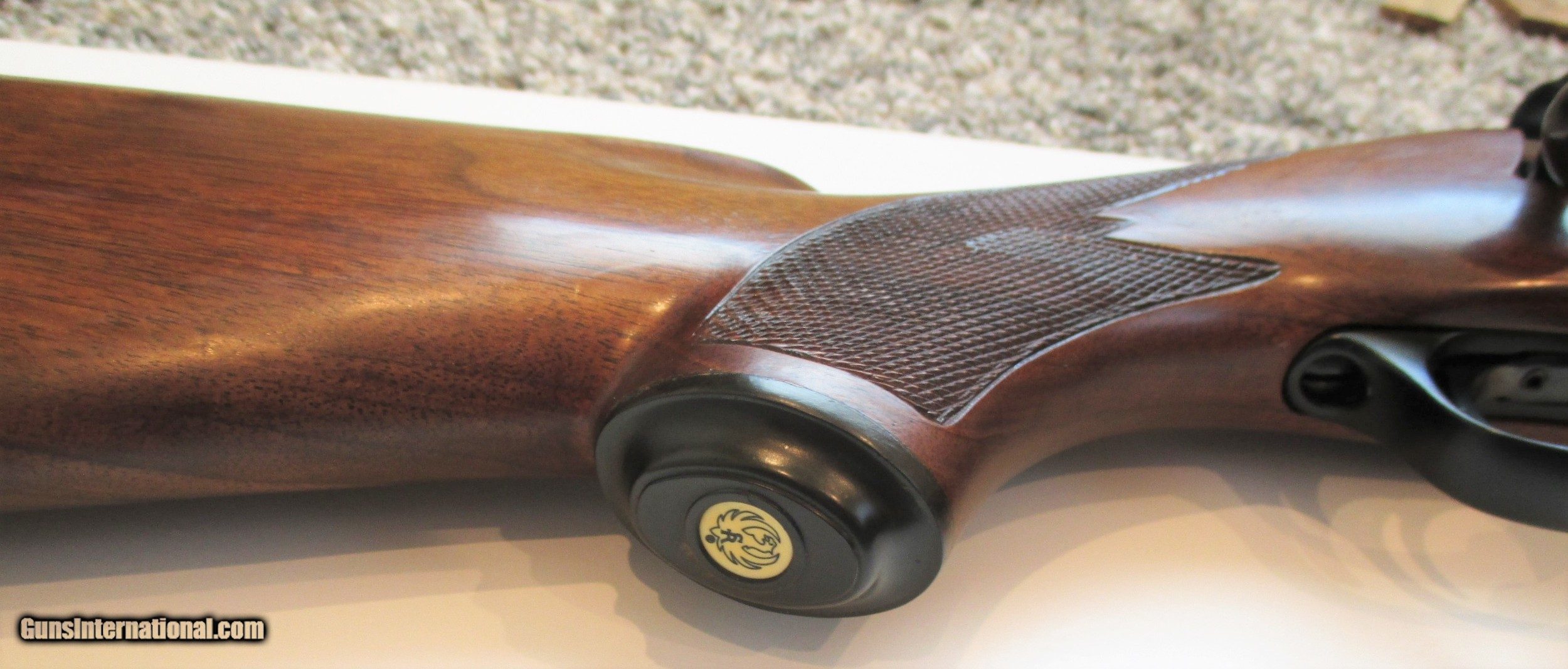 Description: ***SOLD*** Here is a nice old Ruger Model M77R. This has the so called "pencil barrel" with no factory sights and Ruger scope rings to fit their receiver. This is also the pre-Mk. II model that has the popular tang safety. The caliber is .280 Remington. I bought this gun new in 1980. It has probably 60 to 80 rounds through it done while breaking in the barrel, zeroing the scope (no scope is provided in the sale), and practicing. Certainly no more than 100 rounds have been through it. Very nice wood, at least 97% or better blueing. Original Ruger red rubber buttpad. Bright, sharp, clean bore. Perfect functioning. Original owner's manual included. I hunted with it for two seasons and it has been sitting in a closet for 38 years. Too old to hunt anymore so it’s time to pass this one on to another hunter. Please see all photos. Standard Guns International return policies apply. No export sales. Payment will be by Postal Money Order only. Shipping will be via FedEx, well packed and fully insured. Cost is $35.00 to lower 48, extra for Alaska and Hawaii Please feel free to contact me if you have any questions. SOLD Rifle Caliber: .280 Remington Manufacturer: Ruger Model: M77R Serial Number: 74-63396 Barrel Length: 22 Condition: Excellent Metal Condition: Excellent Wood Condition: Excellent Bore Condition: Excellent |