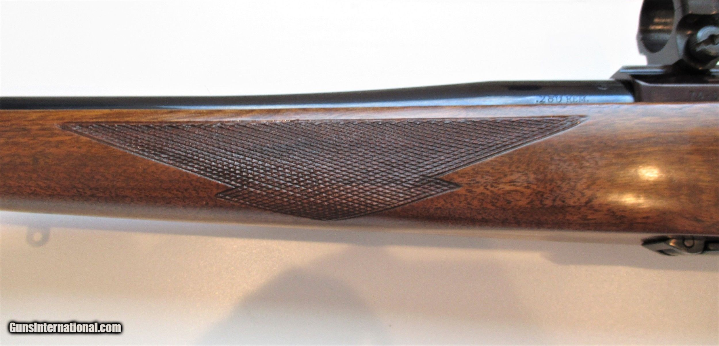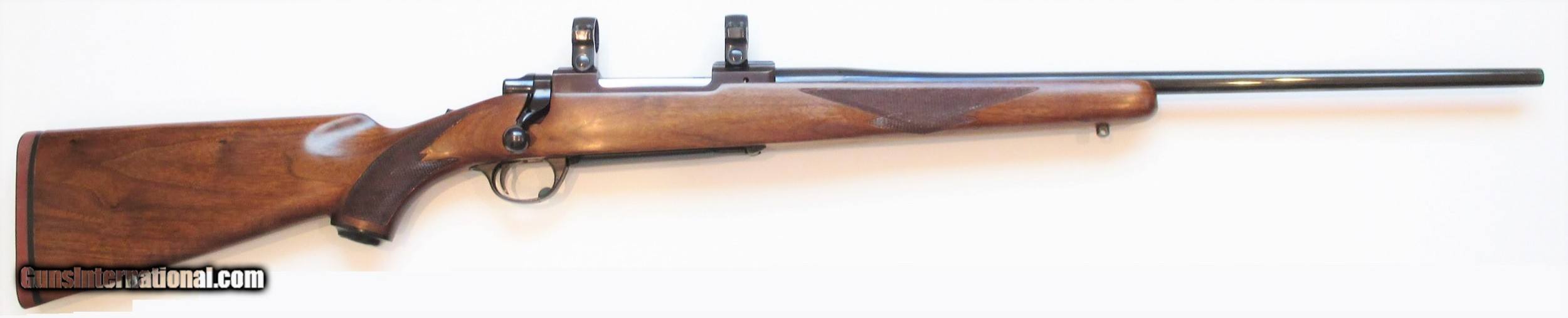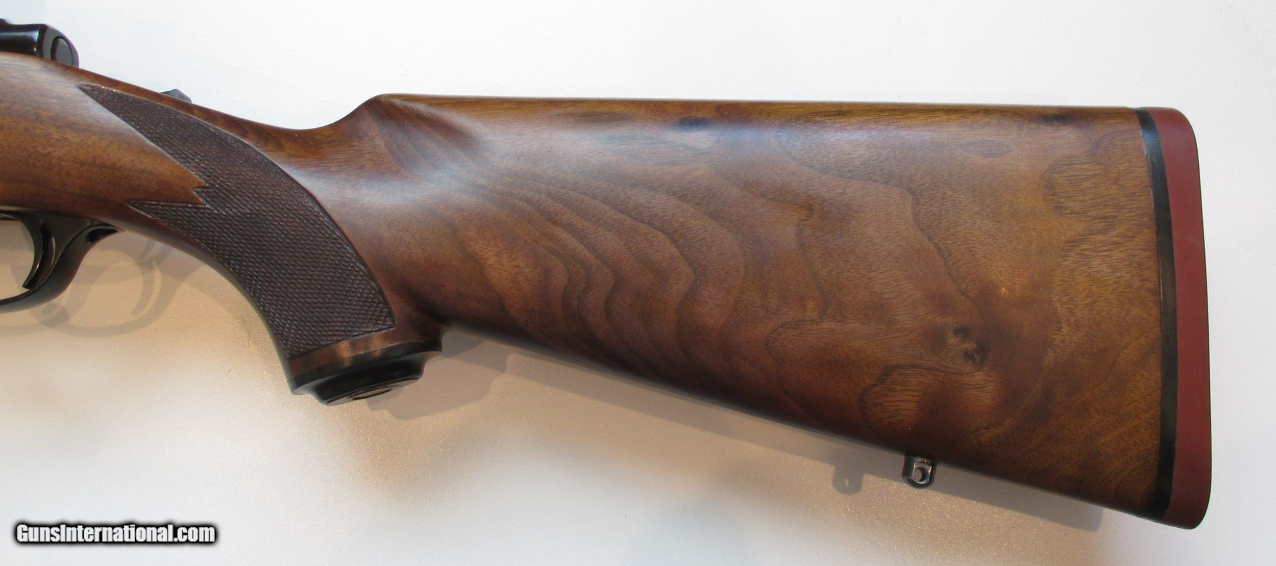 Description: ***SOLD*** Here is a nice old Ruger Model M77R. This has the so called "pencil barrel" with no factory sights and Ruger scope rings to fit their receiver. This is also the pre-Mk. II model that has the popular tang safety. The caliber is .280 Remington. I bought this gun new in 1980. It has probably 60 to 80 rounds through it done while breaking in the barrel, zeroing the scope (no scope is provided in the sale), and practicing. Certainly no more than 100 rounds have been through it. Very nice wood, at least 97% or better blueing. Original Ruger red rubber buttpad. Bright, sharp, clean bore. Perfect functioning. Original owner's manual included. I hunted with it for two seasons and it has been sitting in a closet for 38 years. Too old to hunt anymore so it’s time to pass this one on to another hunter. Please see all photos. Standard Guns International return policies apply. No export sales. Payment will be by Postal Money Order only. Shipping will be via FedEx, well packed and fully insured. Cost is $35.00 to lower 48, extra for Alaska and Hawaii Please feel free to contact me if you have any questions. SOLD Rifle Caliber: .280 Remington Manufacturer: Ruger Model: M77R Serial Number: 74-63396 Barrel Length: 22 Condition: Excellent Metal Condition: Excellent Wood Condition: Excellent Bore Condition: Excellent |
