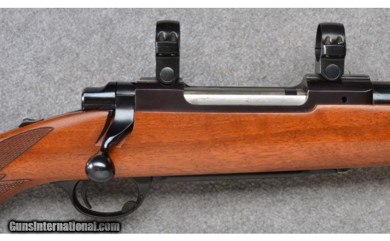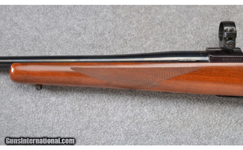 Description: Wood shows a few light use/storage marks and buttstock has bee fitted with a non-original recoild pad. Blue and bore remain excellent. Complete with Ruger rings. No box. SOLD Manufacturer: S/N 770-85XXX Caliber Info: 7MM Rem. Mag. Metal Condition: Excellent Wood Condition: Very Good Bore Condition: Excellent Barrels: 24 Triggers: Factory Stock: Checkered Walnut Pistol Grip with Black Cap Stock Dimensions: 13 3/8" LOP Fore End: Checkered Walnut Butt Pad: Brown Vented Rubber - Non-Original Weight: 7 1/2 LB Sights: None - Ruger Rings Included Item Location: Wheeling, WV |