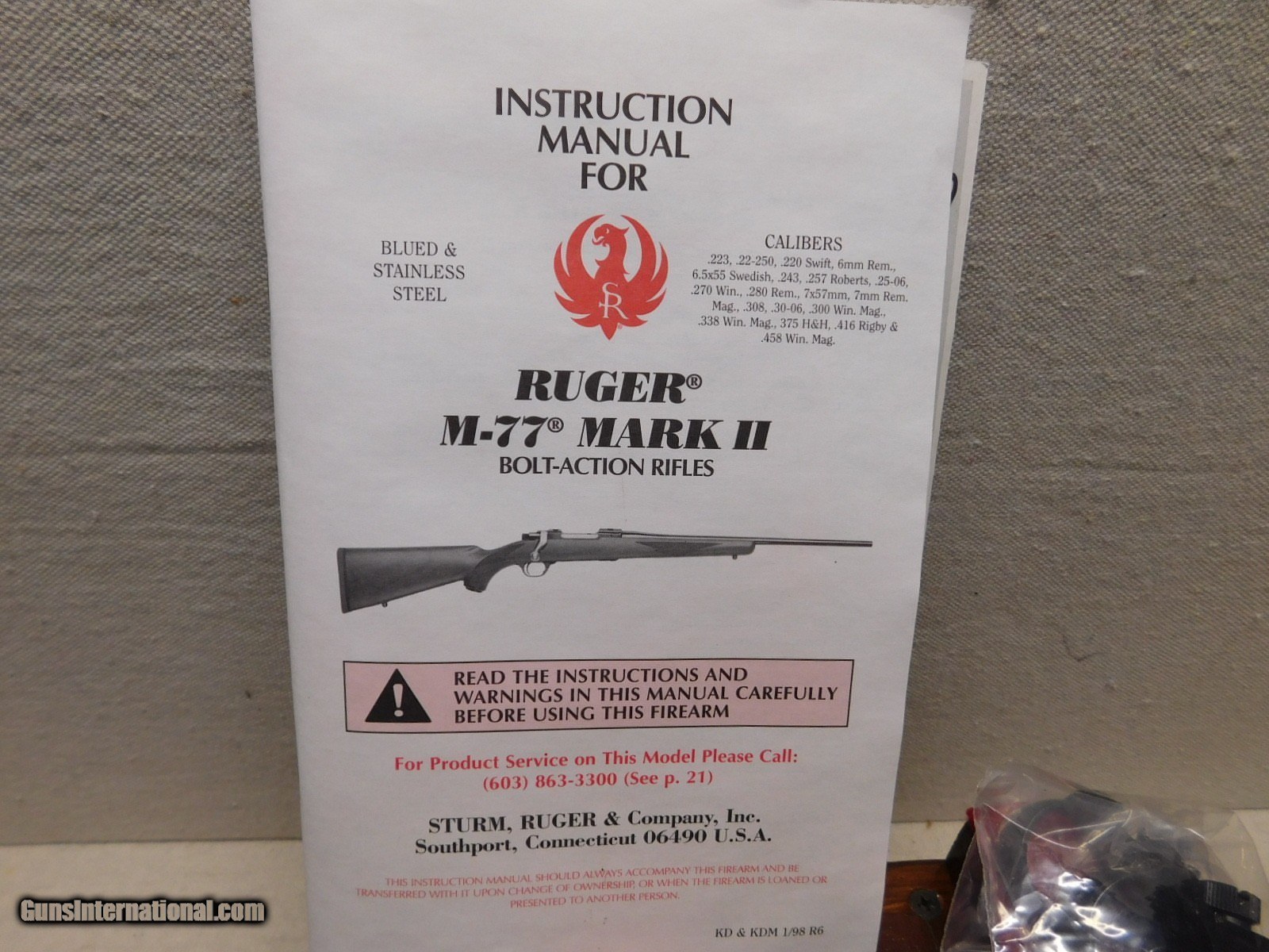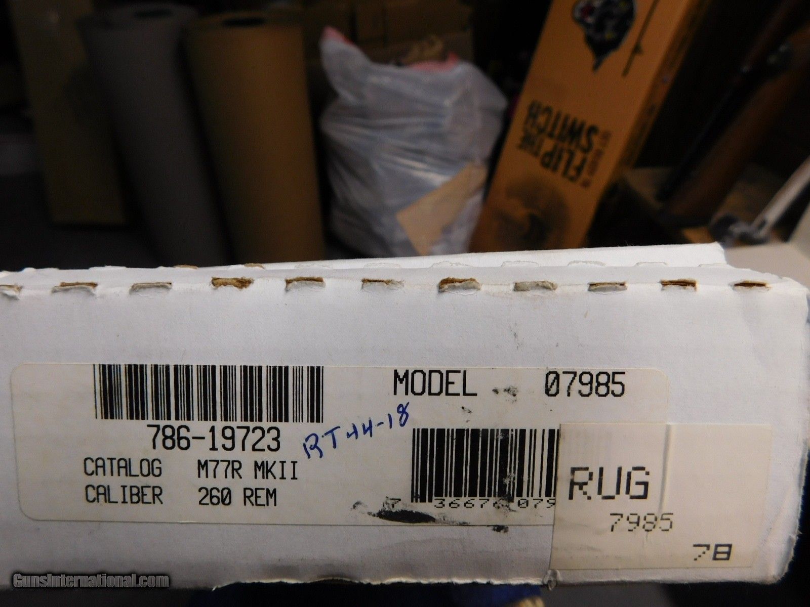 Description: Ruger M77R MKII, 260 Remington,22" Barrel,Blue\ Walnut,Excellent As New Condition,99% Blue, 99% Wood,Appears Test Fired,Only,Correct Box,Papers,Ruger Rings, Circa 1998!! Store hours Thurs-Fri-10AM-8PM Sat-9AM-12PM All Other times please leave a message,Thank You! No California Sales Lower 48 State Sales only Pa. Residents 6% Sales Tax applicable Shipping $ 35.00 SOLD Rifle Caliber: .260 Remington Manufacturer: Ruger Model: M77R Serial Number: 786-19723 Barrel Length: 22 |