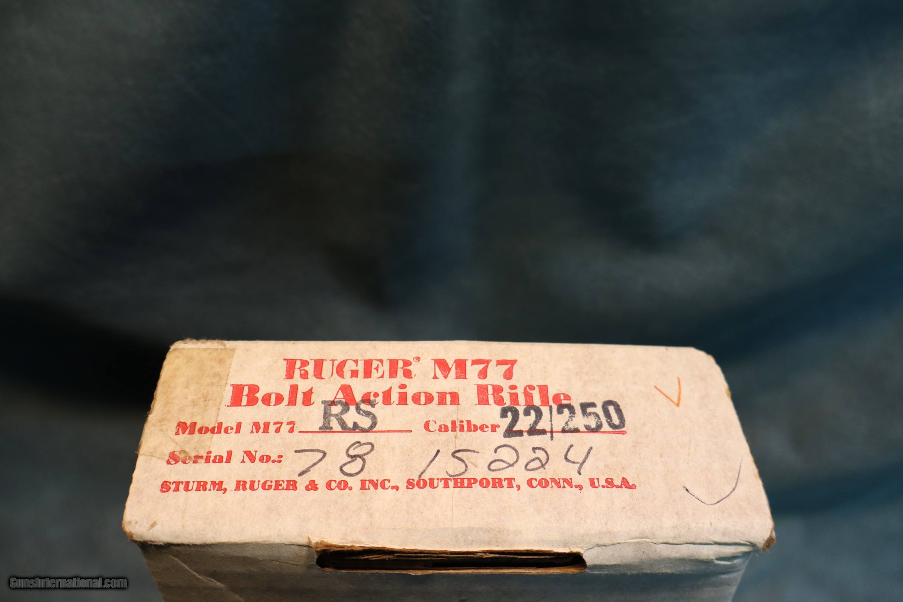 Description: Ruger M77RS 22-250 22" barrel with sights and factory scope rings,red pad,tang safety,with original box and papers,serial #78-15224,made in 1984,scarce variation. GUN COLLECTIONS WANTED FOR CASH! We buy, sell, consign and trade new and used firearms. This is our 49th year in business. We offer 90 day layaways with 20% down. No return on layaways. Firearms will need to be transferred through a FFL dealer. Prices reflect a cash discount. There will be 3% added to credit card sales. We trade for gold and silver. THANK YOU! SOLD |