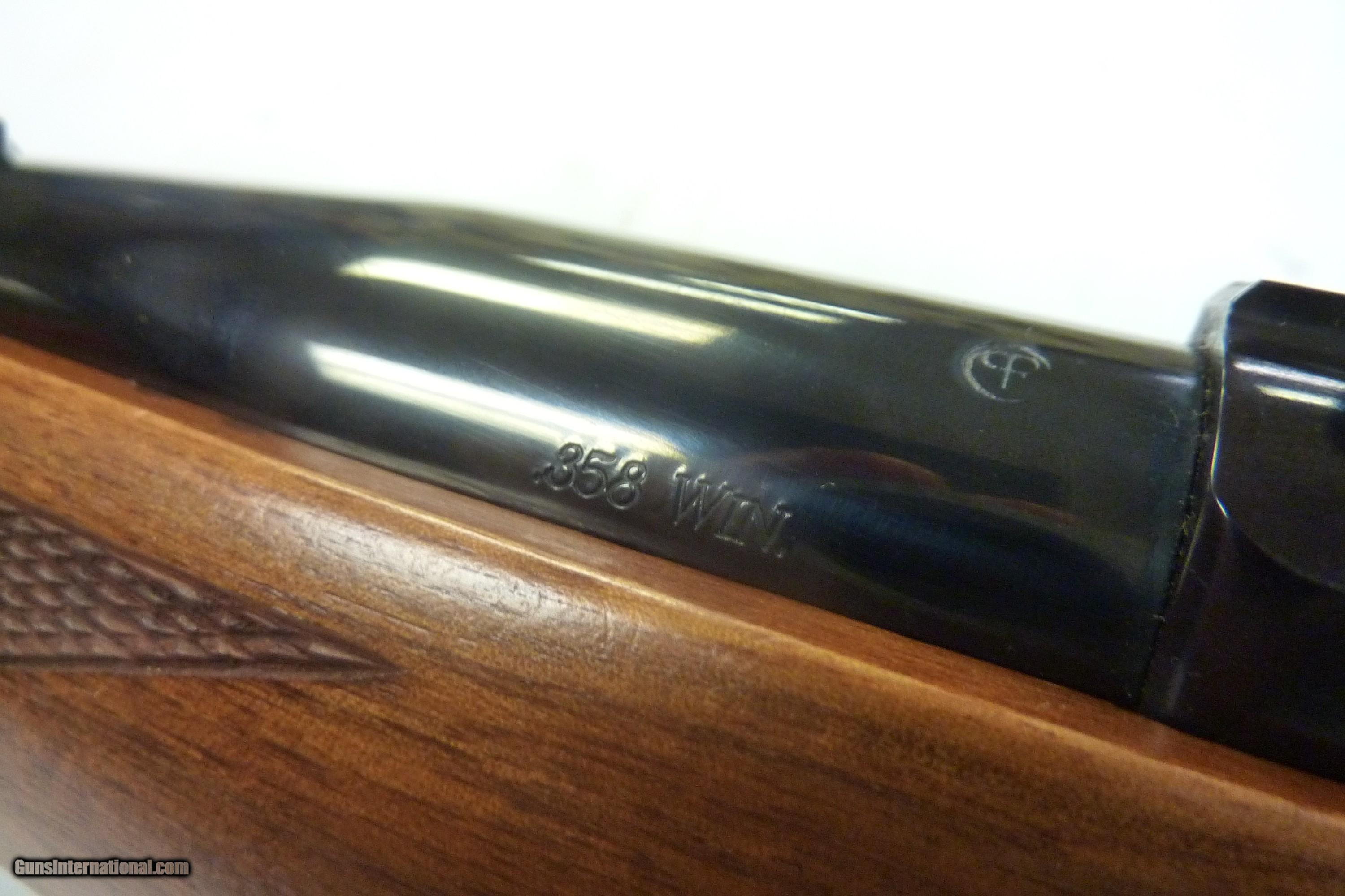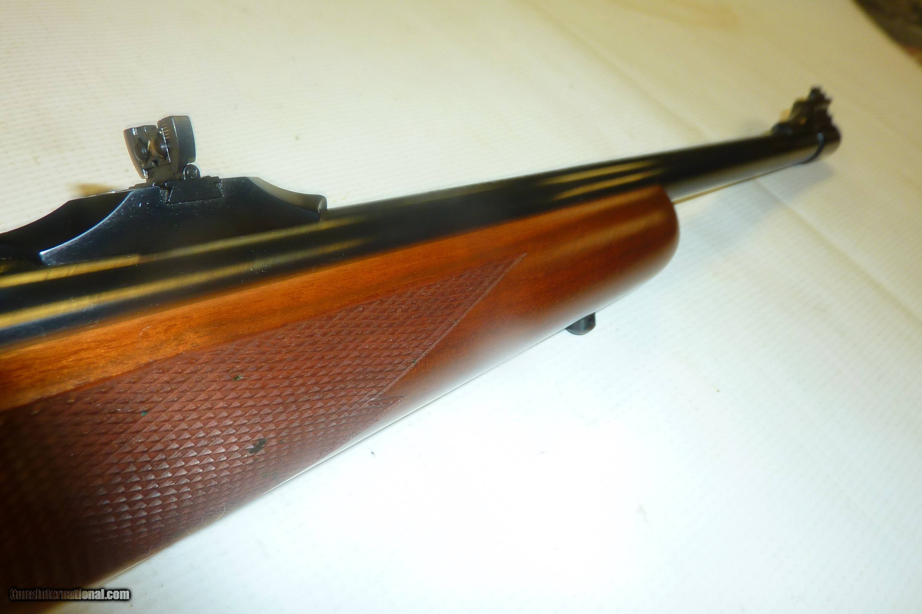 Description: RUGER M77RS .358 WIN MAG BLUED FINISH,19" BARREL ADJUSTABLE REAR SIGHT, RAMP FRONT SIGHT, RUGER integral SCOPE RINGS CHECKERED WALNUT STOCK WITH LIGHT HANDLING MARKS. TANG SAFETY SERIAL # 772-47276 MFG APPROX 1989 WITH OWNER MANUAL, NO BOX. SHIPPING & INSURANCE IS $60.00 ACCT HIGH-VALUE INSURANCE. SOLD Rifle Caliber: .358 Winchester Manufacturer: RUGER Model: M-77RS Serial Number: 772-47276 Barrel Length: 19 Bore: EXCELLENT Chambers: EXCELLENT Condition: EXCELLENT Metal Condition: EXCELLENT Wood Condition: EXCELLENT Bore Condition: EXCELLENT Barrel Type: PLAIN Action: BOLT Manufacture Date: 1989 |