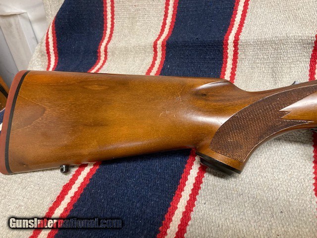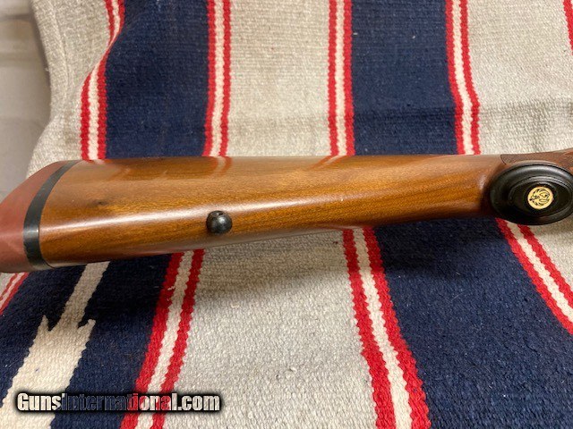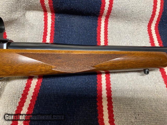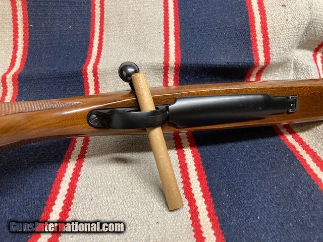 Description: Nice Ruger M77 Varminter in .25-06 Rem . RED PAD/ Tang Safety, Late 70's gun. 24" bbl. Good Bore, Jeweled Bolt( only alteration from original), Wood 95%( a few light marks, see pics). Blueing 95%( Some wear near muzzle). Great long range deer/antelope/coyote gun. Shipping $40. NO CA SALES. SOLD |