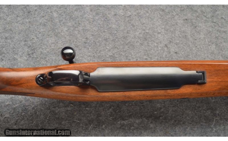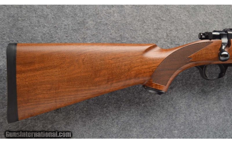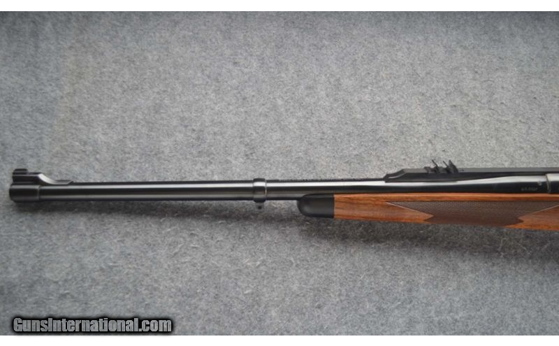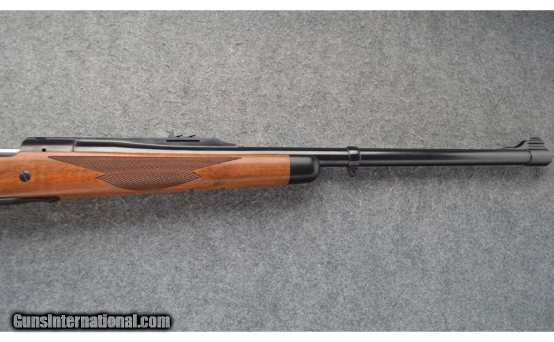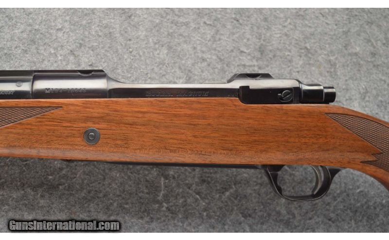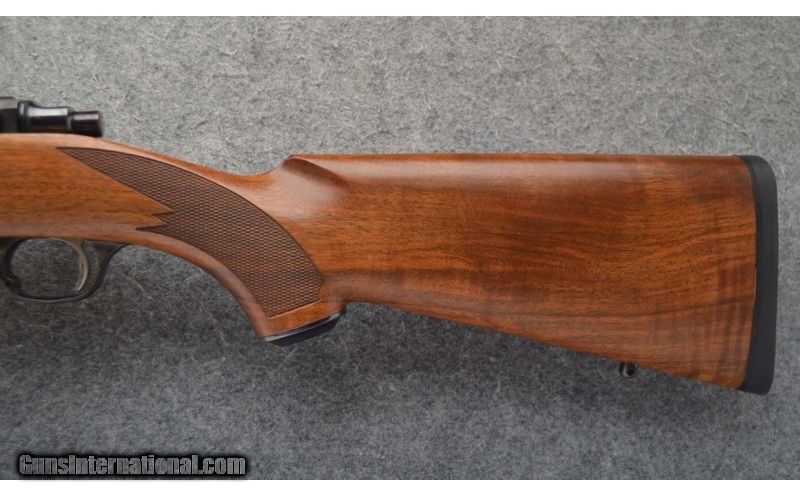 Description: Ruger Magnum in .416 Rigby has square receiver bridge, Quarter rib, banded barrel swivel mount, Mark II action SOLD Caliber Info: .416 Rigby Metal Condition: Few minor handling marks and scratches Wood Condition: Few very minor handling marks almost excellent condition Bore Condition: Bright and Sharp strong rifling Barrels: 22" heavy sporter barrel Stock: Circassian walnut straight checkered, steel pistol grip cap Stock Dimensions: LOP 13 1/2 Fore End: Circassian walnut straight checkered with ebony foreend cap Butt Pad: Ruger black rubber Weight: 9 lbs 4 oz Sights: Front ramp bead, rear express sight with one standing 2 folding leafs, rib machined for scope rings Extras: None Item Location: Sidney, NE |