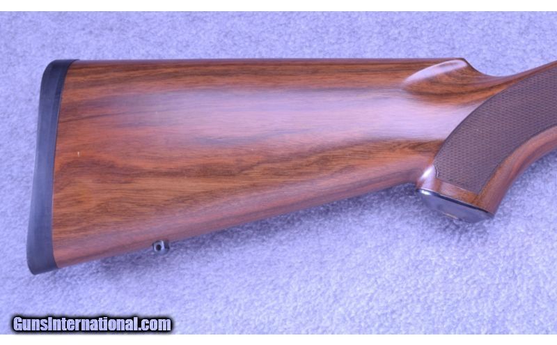 Description: Wood shows a couple light storage marks. Remains free of cracks. Blue and bore are excellent throughout. No box. No rings. SOLD Manufacturer: S/N 750-06XXX Caliber Info: .375 H&H Mag. Metal Condition: Excellent Wood Condition: Very Good Bore Condition: Excellent Barrels: 23 Triggers: Factory Stock: Checkered Walnut Pistol Grip with Steel Cap Stock Dimensions: 13 5/8" LOP Fore End: Checkered Walnut Butt Pad: Black Rubber Weight: 10 LB Sights: Bead Front - One Standing - Two Folding Leaf Rear Item Location: Wheeling, WV |