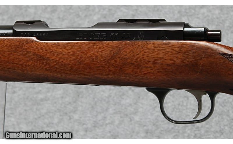 Description: For your consideration is this Ruger Model 77/22. 20 Inch barrel, Chambered in .22 WMR. Includes 2 - 6 round magazines. This is in great condition. A few very minor scuff marks, barely visible without looking specifically for them. The barrel is beautiful and only very slight wear of the bluing. .22 WMR SOLD Chambers: .22 WMR Metal Condition: Excellent Wood Condition: Excellent Bore Condition: Excellent Barrels: 20 Inch Weight: 6 lbs 4 oz Item Location: Berlin |