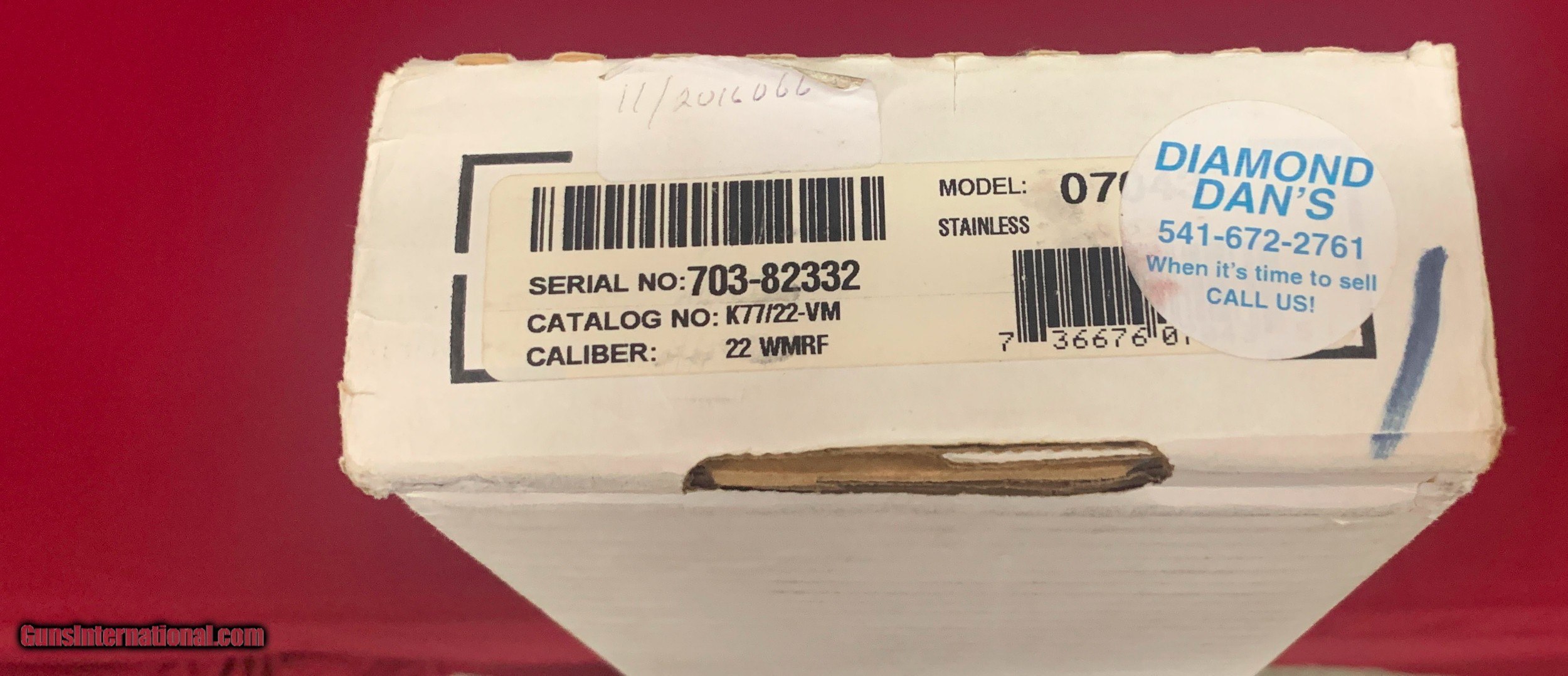 Description: ( SOLD_SOLD ) NIB RUGER MODEL 77/22 VM ( VARMIT ), 22 MAGNUM , STAINLESS STEEL ALL 100% ORIGINAL , UNFIRED WITH SCOPE RINGS . EVERYTHING IS AS FROM THE FACTORY BBL APPEARS TO ME TO BE A LITTLE HEAVIER , THAN A STANDARD RIFLE , BUT I DO NOT HAVE ONE TO COMPARE $1595.00 SHIPPED TO YOUR FFL. I ACCEPT PERSONAL CHECKS AND POSTAL MONEY ORDERS FOR PAYMENT MY bank requires 11 buisness days to guarantee me funds for checks postal money orders will ship same day as payment recieved SOLD |