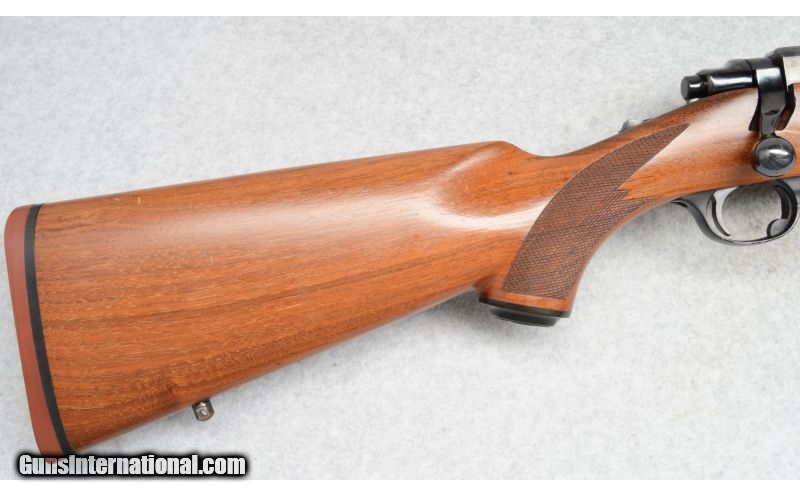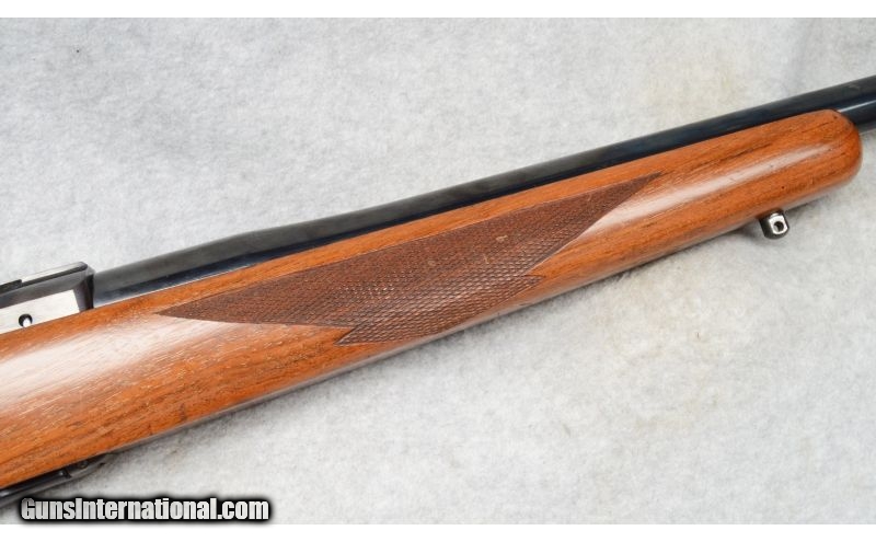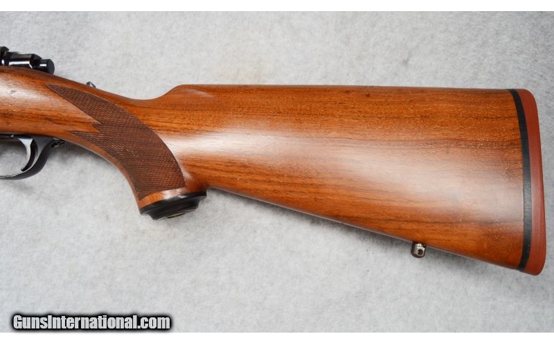 Description: SOLD Caliber Info: .300 Win. Mag. Metal Condition: Very good with scratches on floor plate. Wood Condition: Very good with handling marks. Bore Condition: Shiny with strong rifling. Barrels: 24 Stock: Checkered walnut. Fore End: Checkered walnut. Butt Pad: Rubber. Weight: 7-lbs., 15-ozs. Sights: None. Receiver milled for Ruger rings. Item Location: Fort Worth, TX |