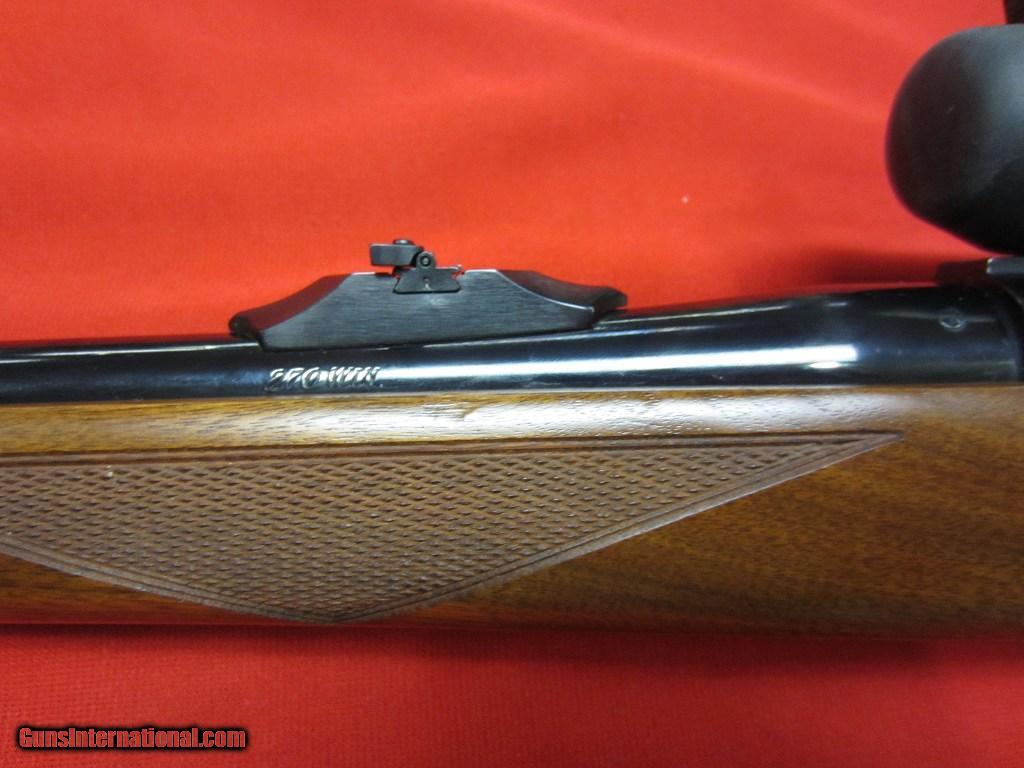 Description: Ruger Model 77 International 270 Winchester 18" w/ Leupold -- Gun remains in excellent condition, full length checkered walnut stock, factory original sights, Leupold 1-4x20 scope mounted in factory rings SOLD |