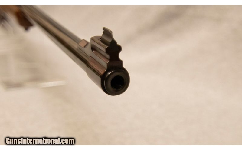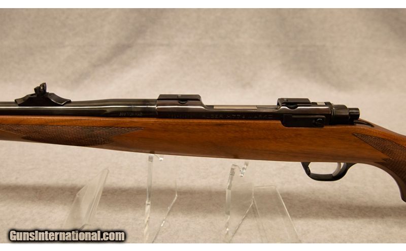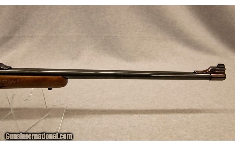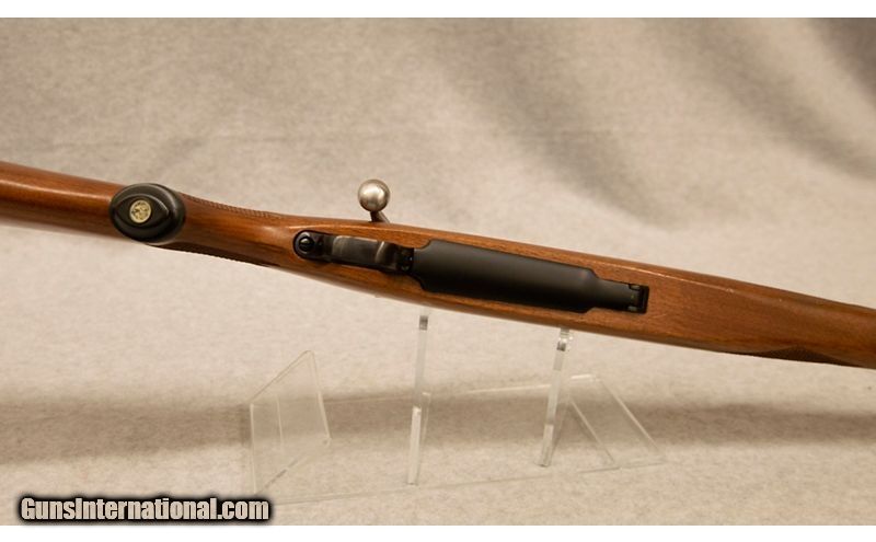 Description: Ruger Model 77 Mark II, chambered in .338 Winchester Magnum, with a 3 round internal magazine. Features include: slenderized proportioning, 3-position swing-back safety, new trigger, trigger guard and floorplate latch, stainless steel bolt with Mauser extractor design, receiver with integral scope bases, hand checkered American walnut stock .338 Winchester Magnum SOLD Chambers: .338 Winchester Magnum Metal Condition: Good Wood Condition: Good Bore Condition: Good Barrels: 24' Stock Dimensions: 14' Butt Pad: Rubber Sights: Iron Item Location: Fort Mill, SC |
