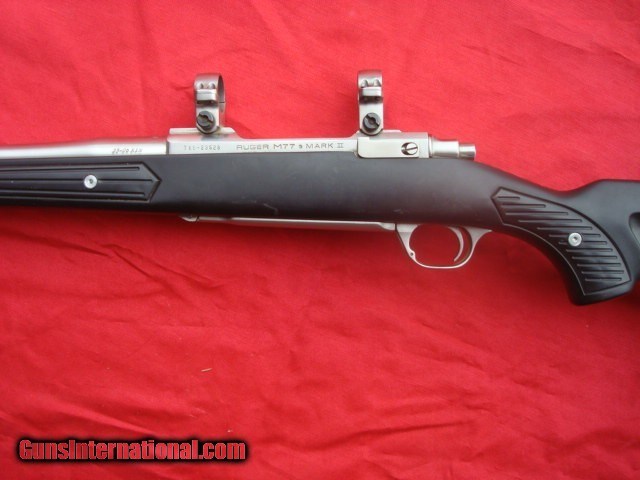 Description: This is a nice Ruger Mark II rifle in 25-06 one of the more difficult calibers to locate in this rifle. Gun is in great condition. One of the nice things about these rifles is that you can take the stock and wash it with warm water and detergent to make it look like new. These stocks are better than any other synthetics for strength and rigidity. Will ship in the lower 48 states for $40.00. SOLD Manufacturer: Ruger Model: 77 Zytel/Stainless Barrel Length: 24 inch Condition: excellent |