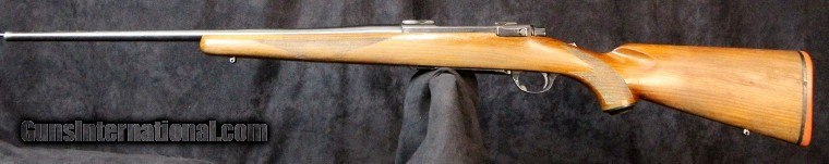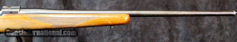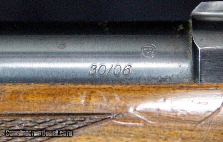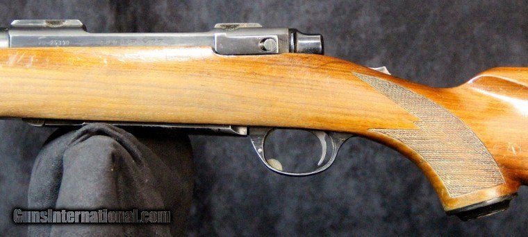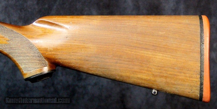 Description: .30-06, #70-25390, 22 inch barrel, blue finish, walnut checkered/pistol grip stock, factory pad, thumb safety, no sights, 1971. Condition: excellent bore, 95% blue overall, flaking on floor plate, very good wood with use dings, excellent mechanically, excellent marks. SOLD |