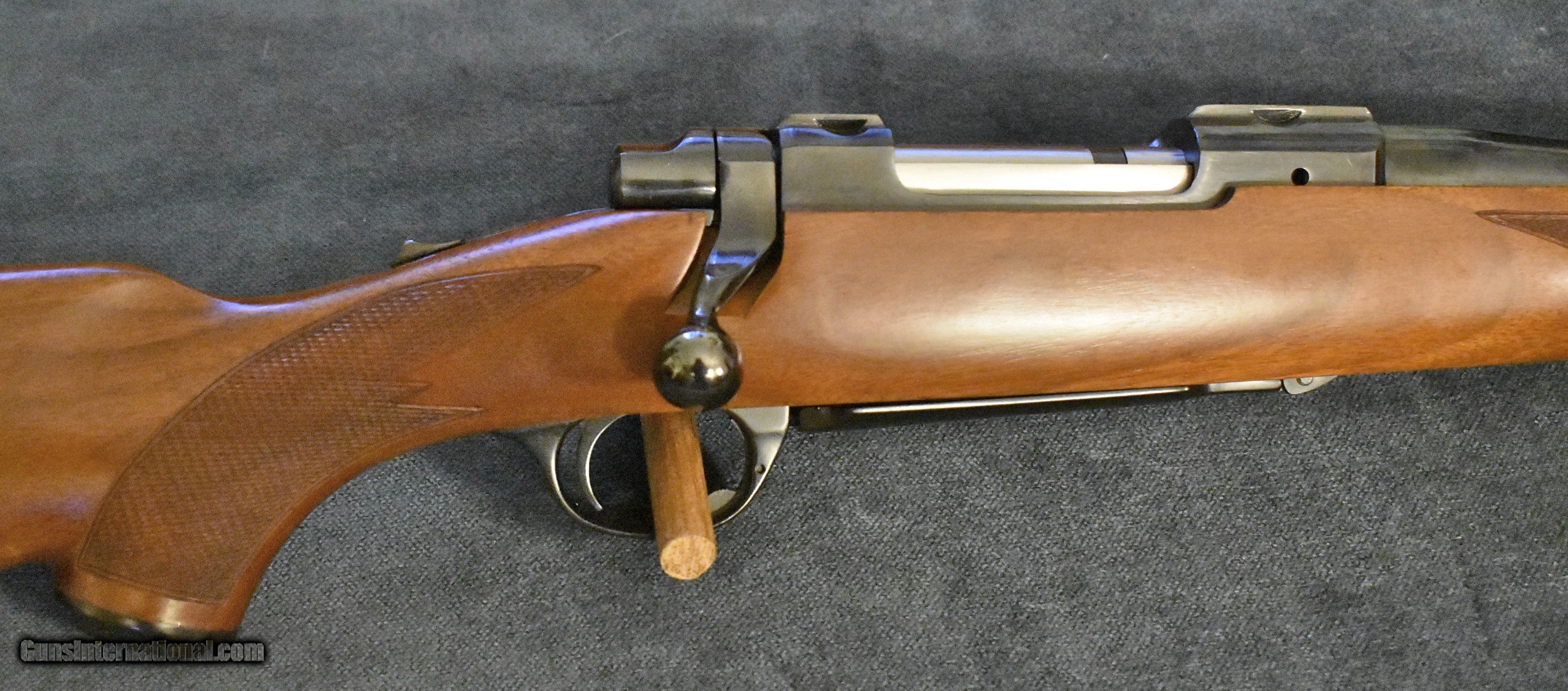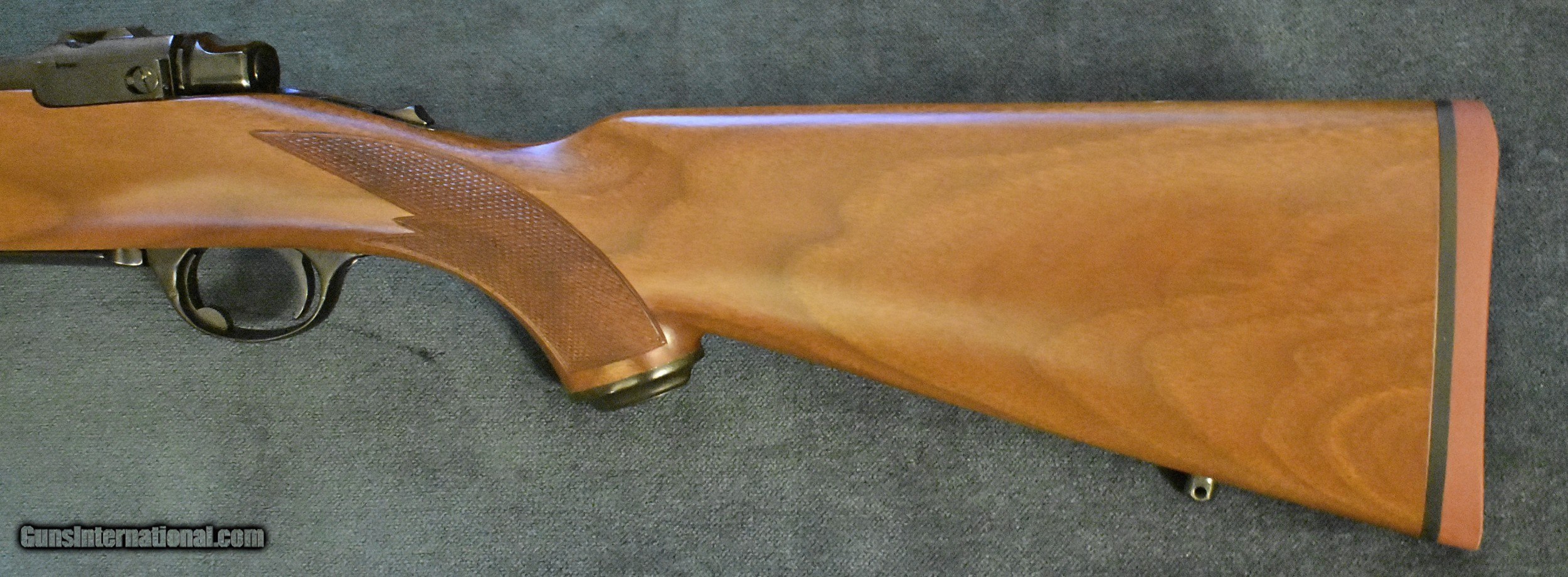 Description: Ruger model 77 RSI international in the hard to find 22-250. Built in 1989,this rifle is new and unfired in the original box with Ruger 1" rings. It has the early style red recoil pad and the tang safety. The rifle retains 100% of the blue and wood finish. The rear sight has been removed, I assume to mount a scope on the rifle. However, there is no sign of a scope having been mounted. I am actively searching for a correct rear sight now. This is a new rifle in a scarce caliber in the original box. A great rifle for the collector or shooter. SOLD Rifle Caliber: .22-250 Remington Manufacturer: Ruger Model: 77 RSI Serial Number: 770-13727 Barrel Length: 181/2 Condition: new in box Metal Condition: new Wood Condition: new Bore Condition: new Action: bolt Butt Pad: factory recoil pad Manufacture Date: 1989 Extras: Box and rings |