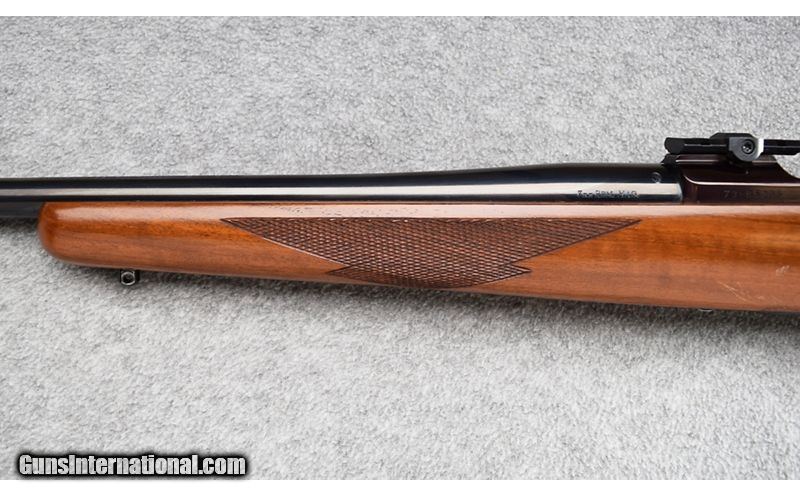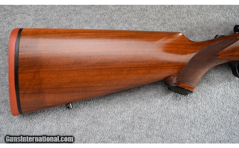 Description: This Ruger was manufactured in 1978 and remains in very good overall condition. Wood is solid with some bruising and scratches on lefts side under receiver. Blue is excellent with some light flaking on trigger guard. Bore is excellent. This is a "Top Tang Safety" gun with a controlled round feed action. Ruger integral sights have a Picatinny rail adapter added. No box. Still a very nice gun for being 44 years old! 7mm Remington Magnum SOLD Metal Condition: Excellent Wood Condition: Very Good Bore Condition: Excellent Barrels: 24 Triggers: Factory Stock Dimensions: 13 3/4" LOP Fore End: Checkered Walnut Pistol Grip with Black Pistol Grip Cap - Checkered Walnut Forend Butt Pad: Ruger Red Rubber Butt Pad Weight: 8lb. Sights: Ruger Integral Scope Mounts with Picatinny Rail Adapter Item Location: Wheeling |