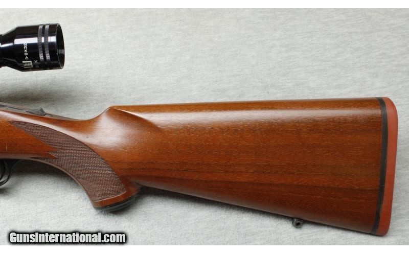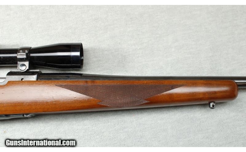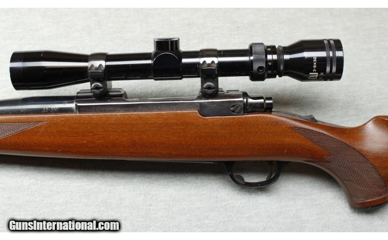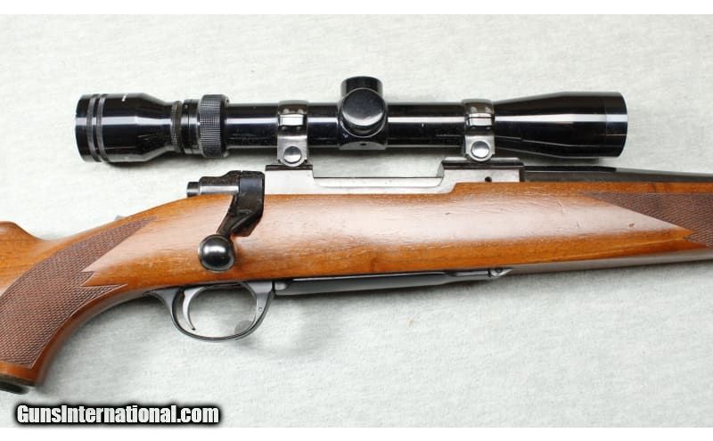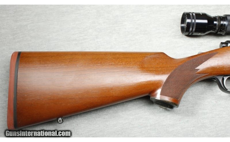 Description: Excellent condition, light wear, few small scratches & nicks. Bolt action hunting rifle with 22" barrel, blued metal, smooth action & crisp trigger, Universal 3-9s scope installed. Semi gloss finish checkered wood stock with decorative grip cap, Ruger recoil pad and sling swivel mounts. Manufactured in 1979 .22-250 Remington SOLD Chambers: Bolt action Metal Condition: Excellent Wood Condition: Excellent Bore Condition: Bright Barrels: 22 Triggers: Factory Stock Dimensions: 13 3/4" LOP Fore End: Checkered Butt Pad: Factory pad Sights: Universal 3-9x scope Item Location: La Vista, NE |