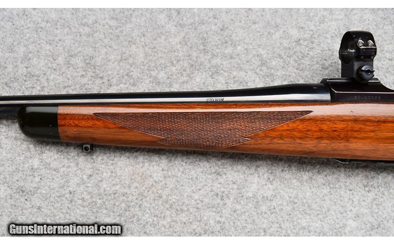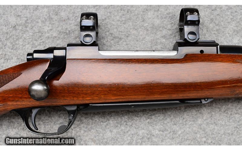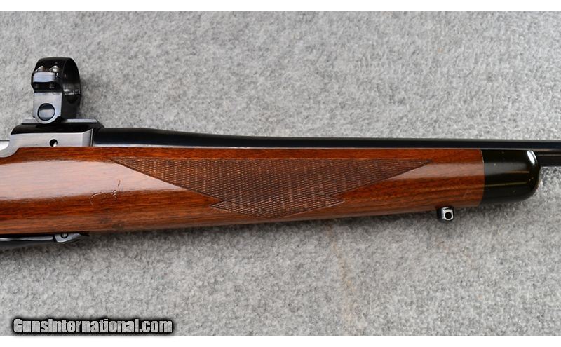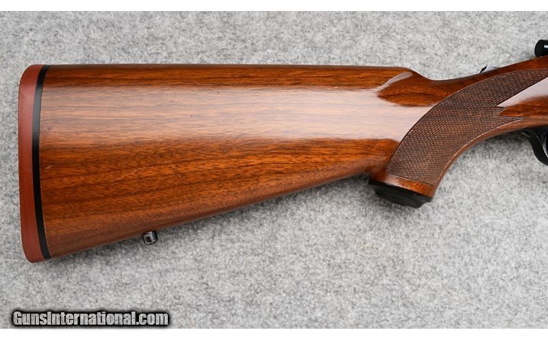 Description: This Ruger remains in very good overall condition. Gun has been carried and used and shows some scratches and dings in stock. Forend cap and toe of buttstock both have some flaking and marks but wood remains solid with no cracks. Metal is in very good condition with a few marks on barrel and floorplate. Bore is excellent! Complete with scope rings attached. .270 Winchester SOLD Metal Condition: Very Good Wood Condition: Very Good Bore Condition: Excellent Barrels: 20 Triggers: 4 1/2 LB Trigger Pull Stock Dimensions: 13 5/8" LOP Fore End: Checkered Walnut Pistol Grip with Ruger Black Pistol Grip Cap - Checkered Walnut with Black Forend Cap Butt Pad: Red Ruger Butt Pad Weight: 6.5 lbs. Sights: None - Integral Mount with Scope Rings Attached Item Location: Wheeling |