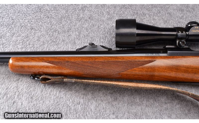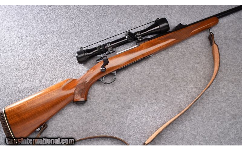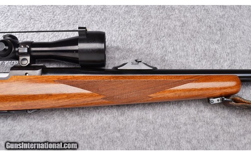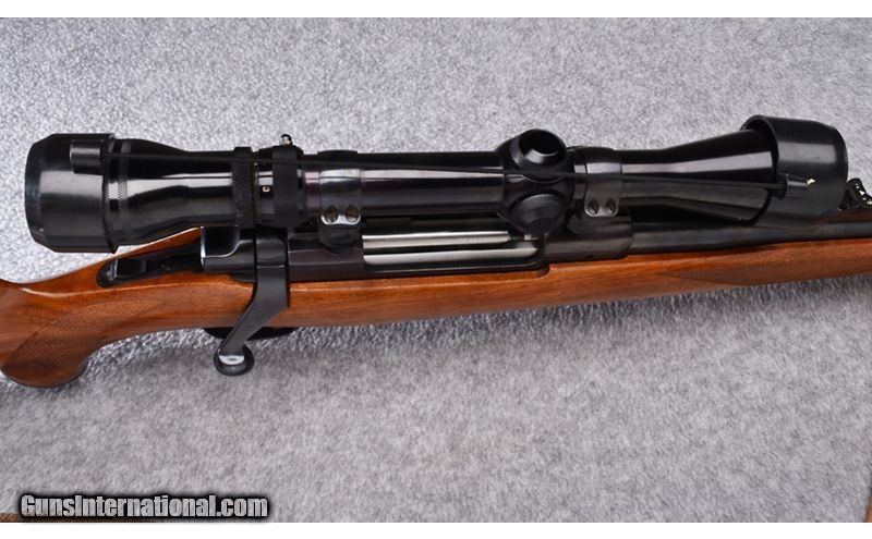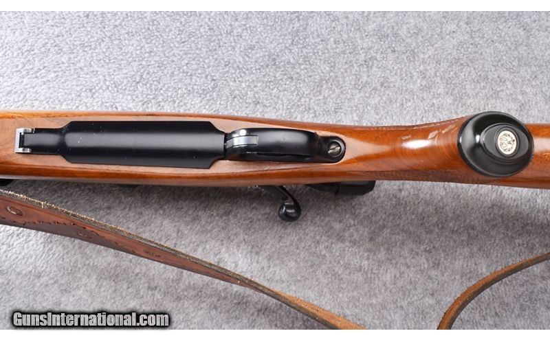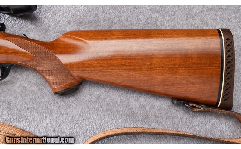 Description: This Ruger remains in overall excellent condition with an early serial number. The wood is solid showing some light handling marks and impressions in the wood. Blue is excellent with just a few light marks on trigger guard and floorplate. Bore is excellent. Controlled Round feed action with a heavy leather sling. Gun is complete with original iron sights and Redfield 3x-9x scope. No box. 7 MM MAG SOLD Metal Condition: Excellent Wood Condition: Very Good Bore Condition: Excellent Barrels: 24 Triggers: Original Stock Dimensions: 14 1/8" LOP Fore End: Checkered Walnut Pistol Grip with Black Ruger Pistol Grip Cap - Checkered Walnut Forend Butt Pad: Pachmayr Whitline Vented Brown Rubber Butt Pad Weight: 9.5 lbs. Sights: Post & Bead Front - Folding V-Notch Rear - Redfield 3x-9x Scope Item Location: Wheeling |