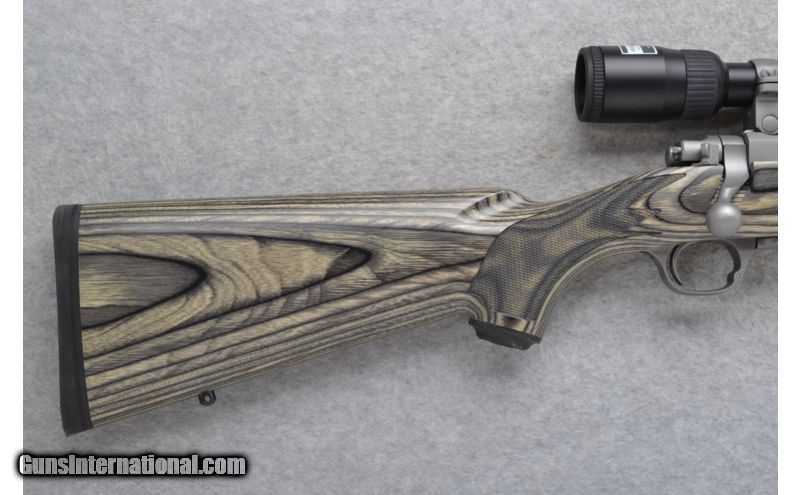 Description: SOLD Caliber Info: .308 Win. Chambers: Hinged floorplate. Metal Condition: Excellent. A couple minor handling marks. Wood Condition: Excellent. Bore Condition: Excellent. Barrels: 22 inch satin stainless steel. Stock: Checkered grip tri-color hardwood laminate pistol grip with a black Ruger cap. Stock Dimensions: LOP 13 1/2 inches. Fore End: Checkered grip tri-color hardwood laminate. Butt Pad: Ruger black rubber pad. Weight: 8 lbs. 8 oz. Sights: Nikon Prostaff 4-12x40mm Scope. No iron sights. Item Location: Richfield, WI |