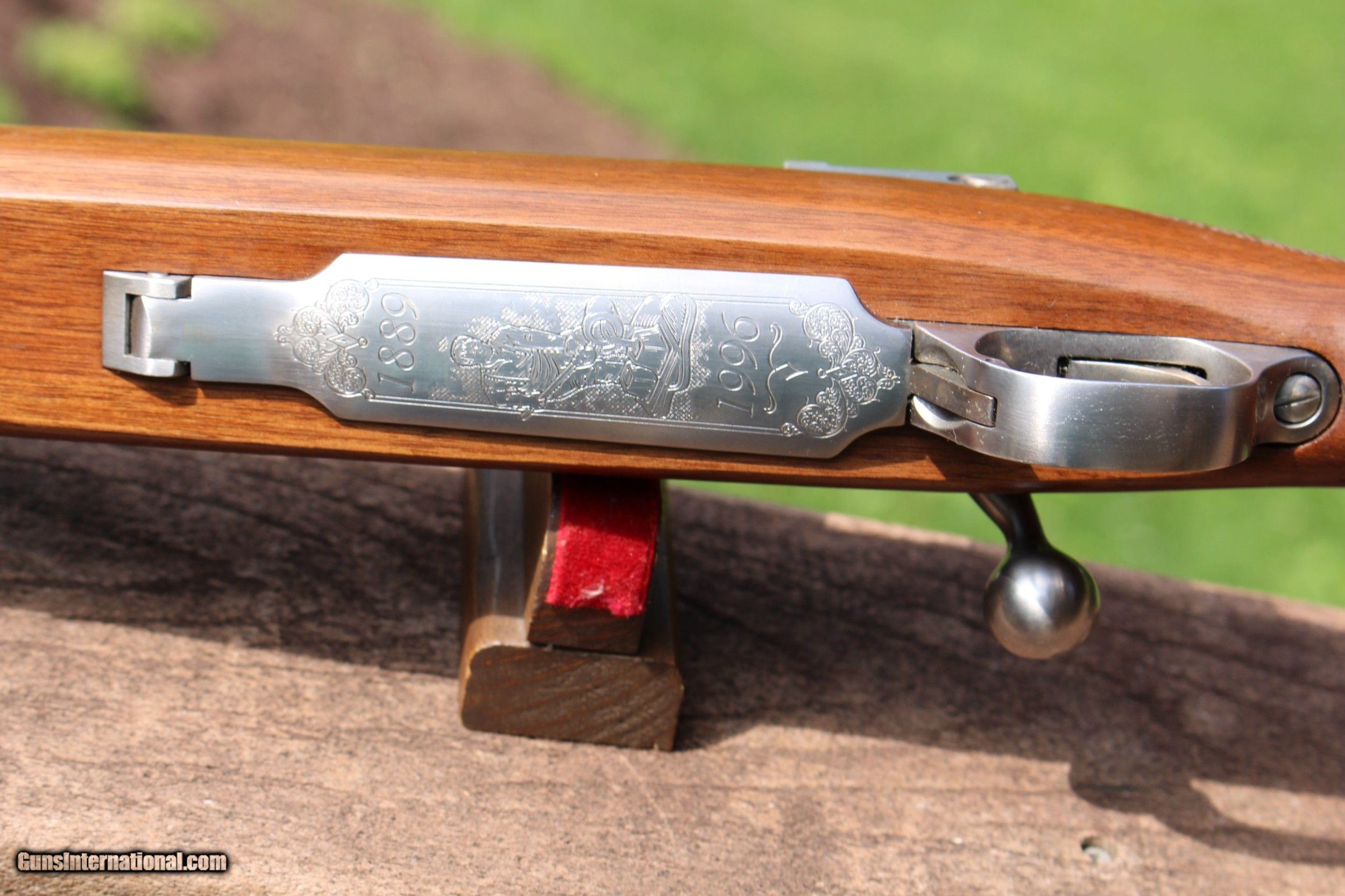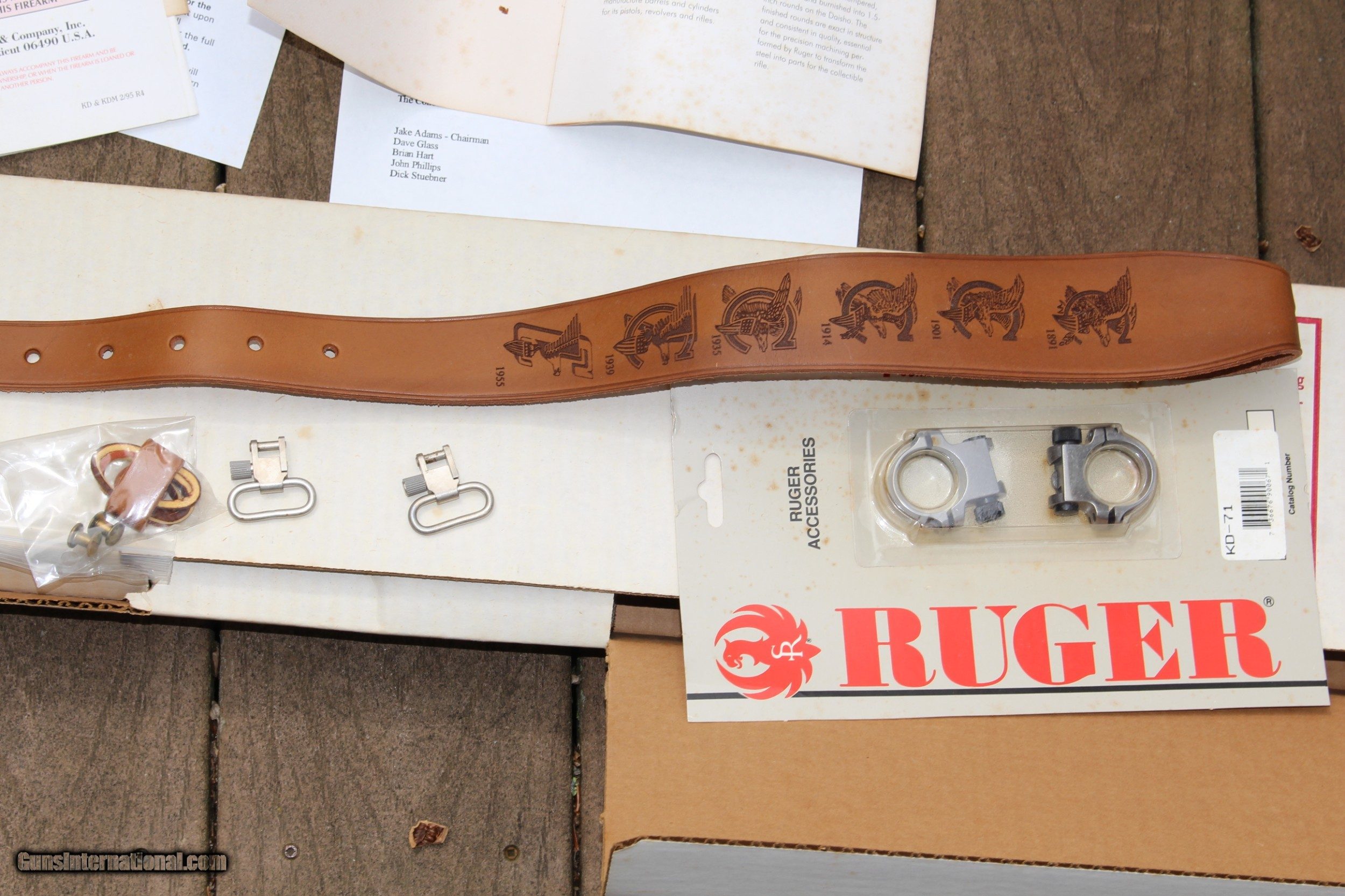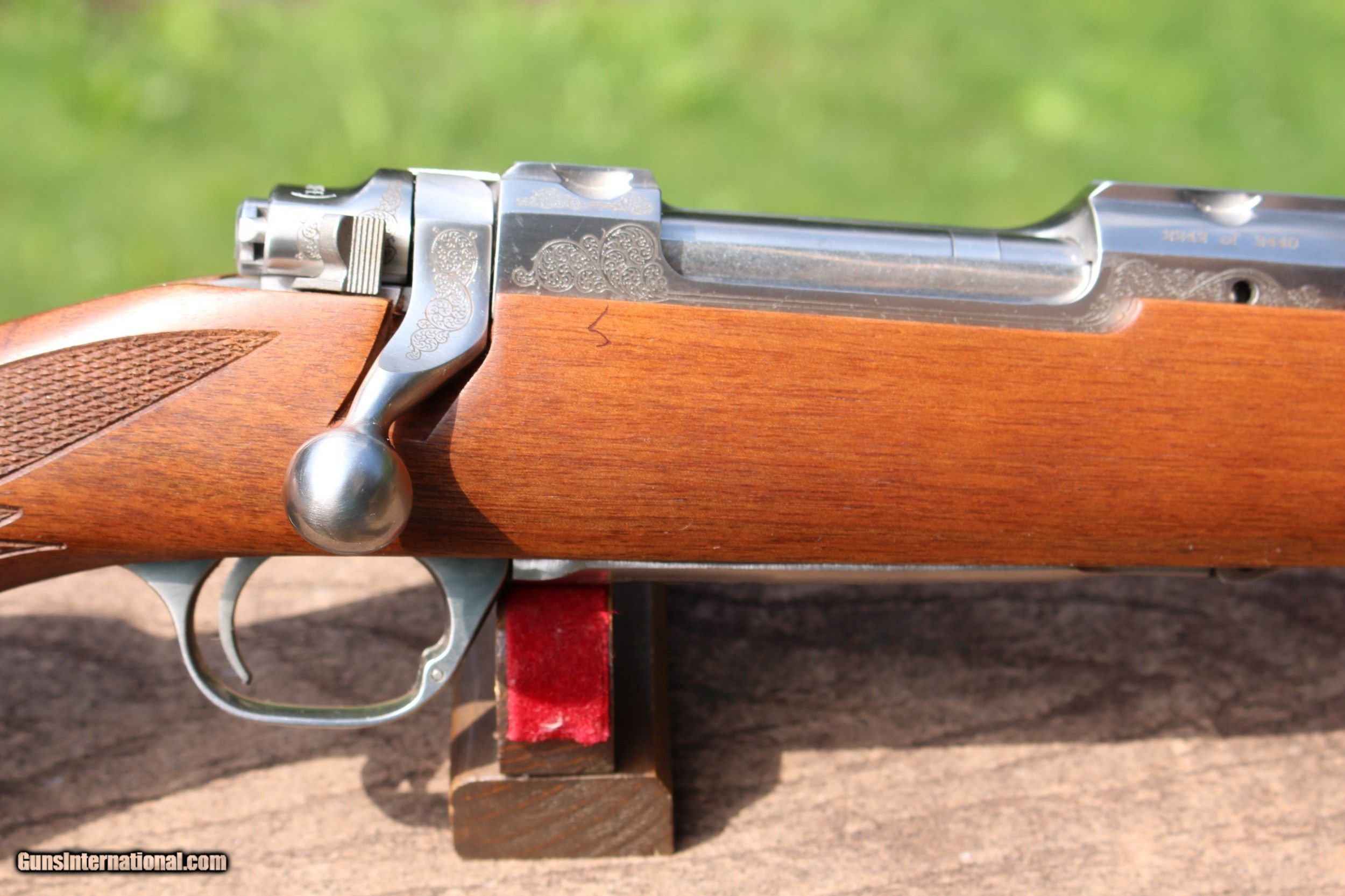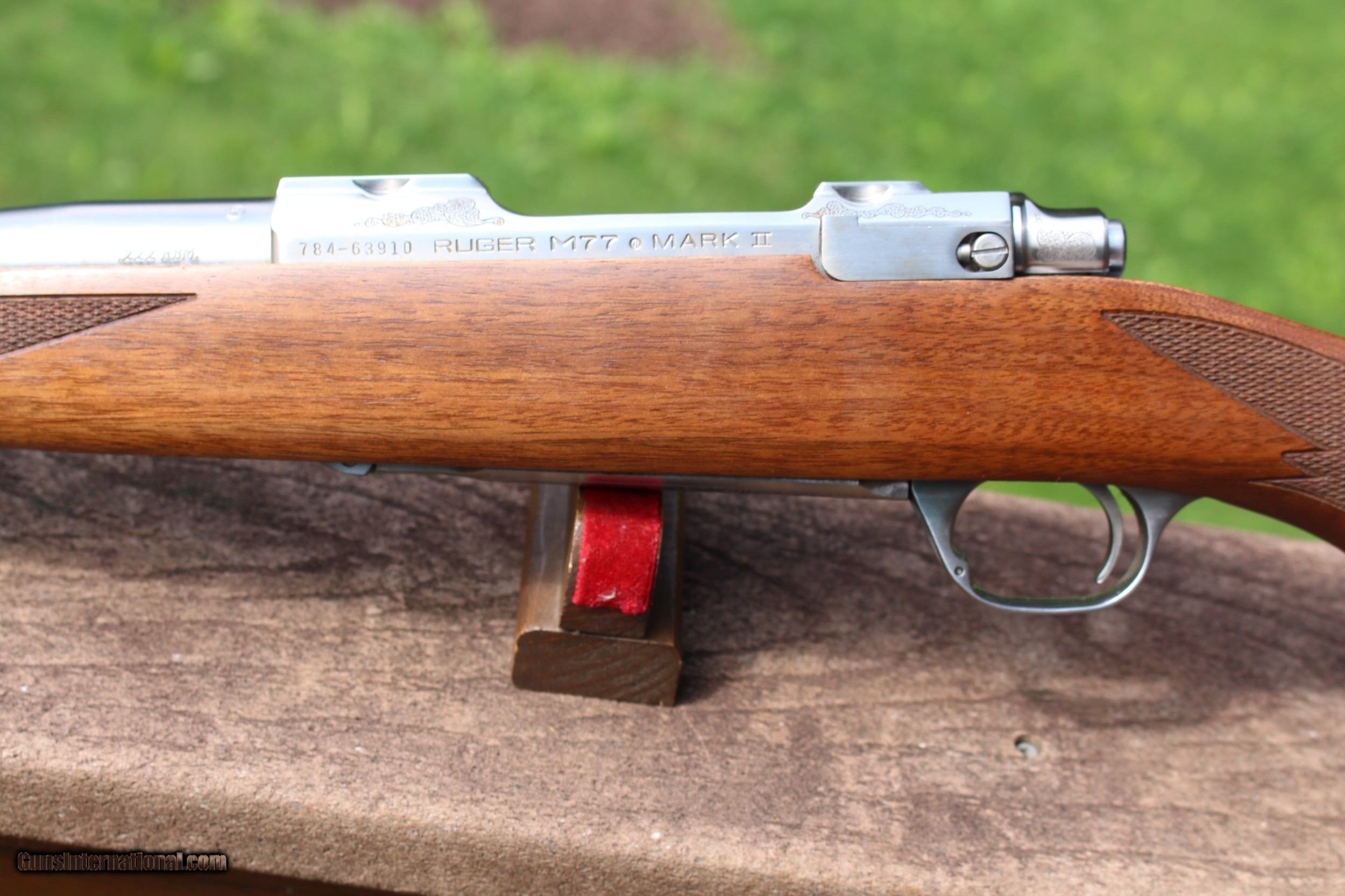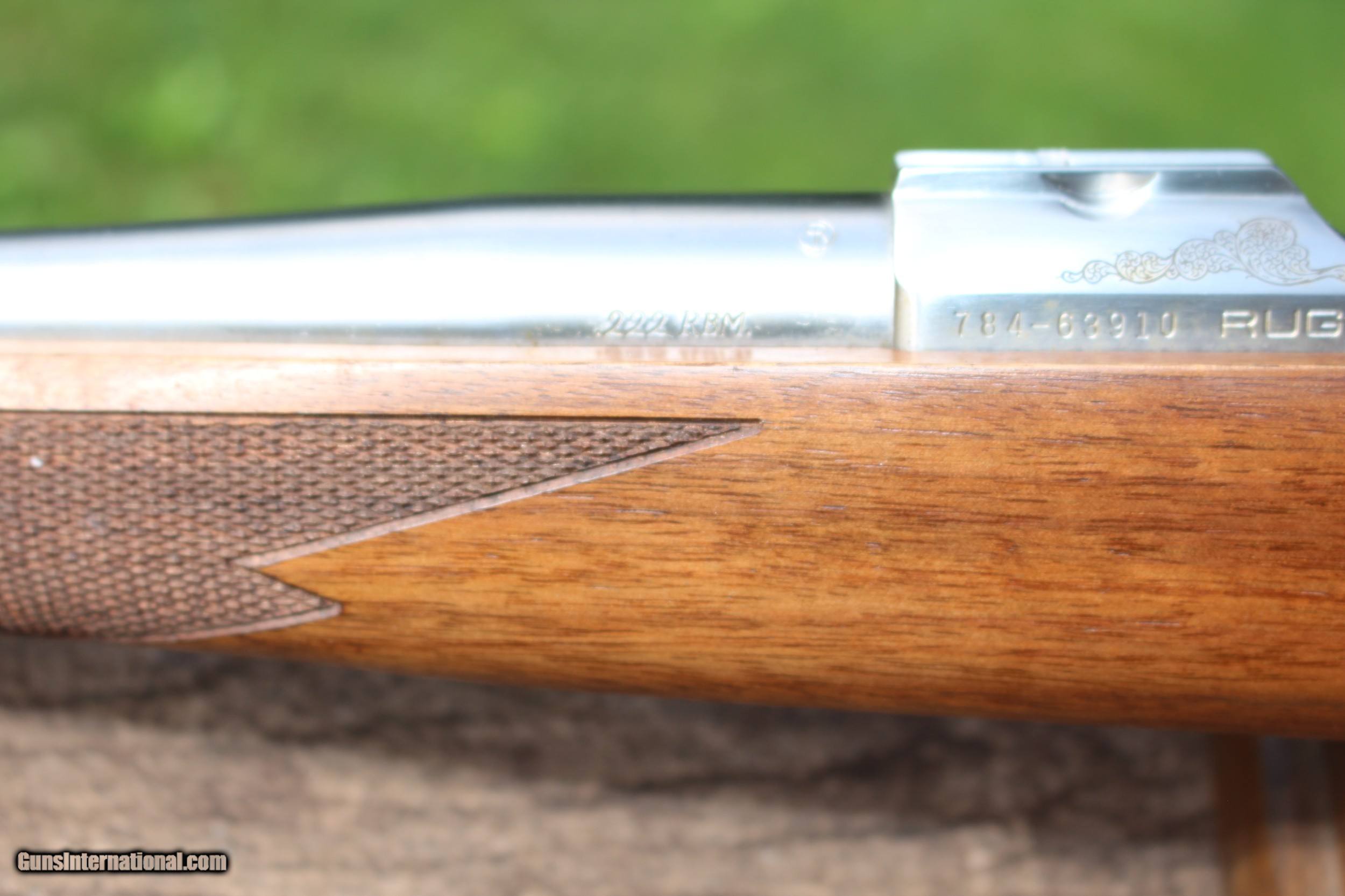 Description: RUGER MODEL 77 MARK II IN RARE, UNCATALOGUED .222 REMINGTON CALIBER!! (NOT A TYPO.... .222 REM. CALIBER!) THIS IS BRAND NEW AS ISSUED IN ORIGINAL BOX...SLING SWIVELS WERN'T EVEN PUT ON! EXTREMELY COLLECTIBLE RIFLE WAS MADE BY RUGER AS A COMMEMORATIVE ESPECIALLY FOR THE CARPENTER TECHNOLOGY CORPORATION IN READING, PA, WHO IS A SUPPLIER OF THE STAINLESS STEEL FOR RUGER BARRELS. THESE GUNS WERE MADE IN A LIMITED RUN OF 2440 PIECES, AND THIS GUN IS #2242 OF 2440. THE GUN IS ALL STAINLESS STEEL, WITH HIGH GRADE SPECIAL ENGRAVING FROM THE FACTORY. THE FLOOR PLATE IS GORGEOUS ON THIS GUN! IT COMES WITH THE RUGER FACTORY SCOPE RINGS AND A SPECIAL HAND-TOOLED LEATHER SLING WITH STAINLESS SWIVELS, WHICH IS ENGRAVED WITH THE VARIOUS COMPANY LOGOS OF CARPENTER TECHNOLOGY THROUGH THE YEARS FROM 1889 UNTIL 1996. ACCORDING TO RUGER COMPANY INFORMATION, THEY HAVE NEVER CHAMBERED ANY OTHER MODEL 77 RIFLES IN .222 REMINGTON CALIBER, SO THIS IS ONE OF THE RAREST RUGERS EVER MANUFACTURED. IF YOU ARE A RUGER COLLECTOR, THIS IS ONE YOU DON'T WANT TO PASS UP!!...UNFIRED...ANY QUESTIONS PLEASE E-MAIL SOLD |