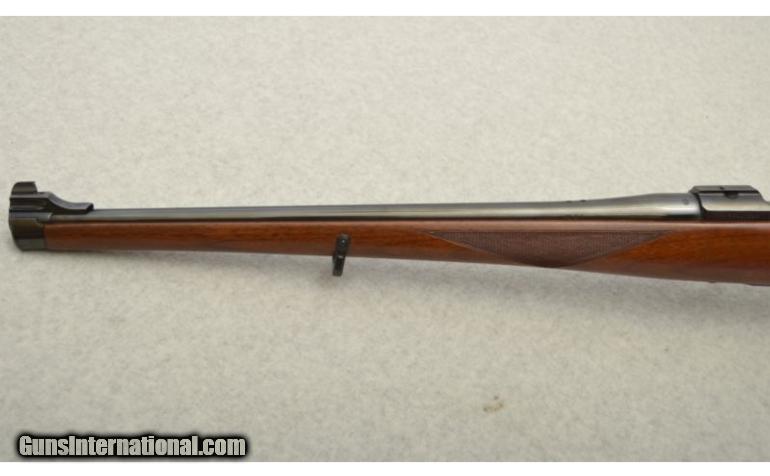 Description: SOLD Manufacturer: Manufactured from 1968-1991 Caliber Info: .22-250 Remington Metal Condition: Metal is excellent, small scratch on hinged floor-plate (see photo). Wood Condition: Wood is very good+ scratch on left side of stock near swivel stud (see photo) 1" compression mark on left between trigger and receiver. Bore Condition: Bore is excellent Barrels: 18 1/2" Barrel Triggers: Smooth narrow black trigger Stock: American walnut Mannlicher stock with two panel checkering and black Ruger grip cap, swivel studs installed. Stock Dimensions: 13 1/2" LOP Fore End: Full length with two panel checkering, sling loop and blued fore end tip. Butt Pad: Solid red Ruger pad with black spacer. Weight: 6 pounds 2 ounces Sights: Bead front sight Item Location: Green Bay, WI |