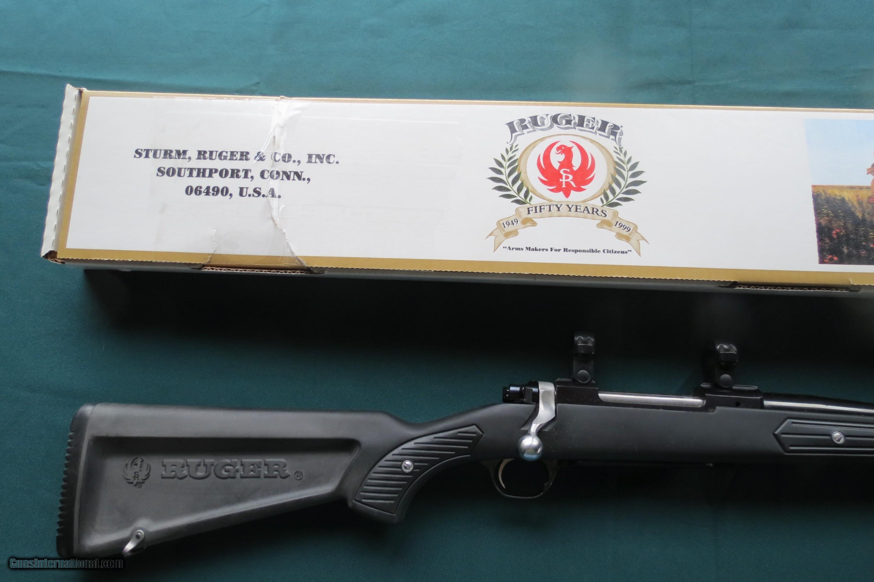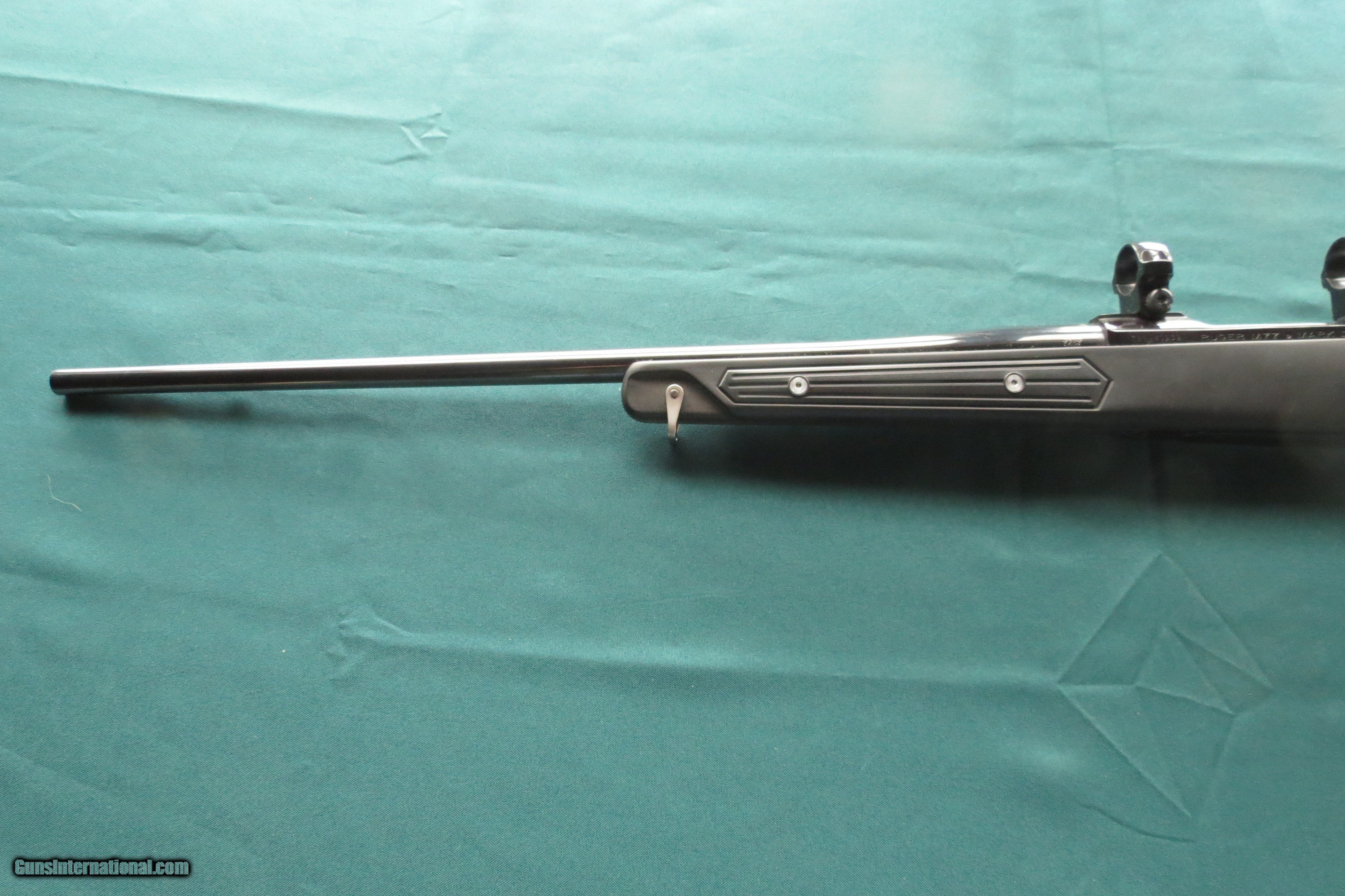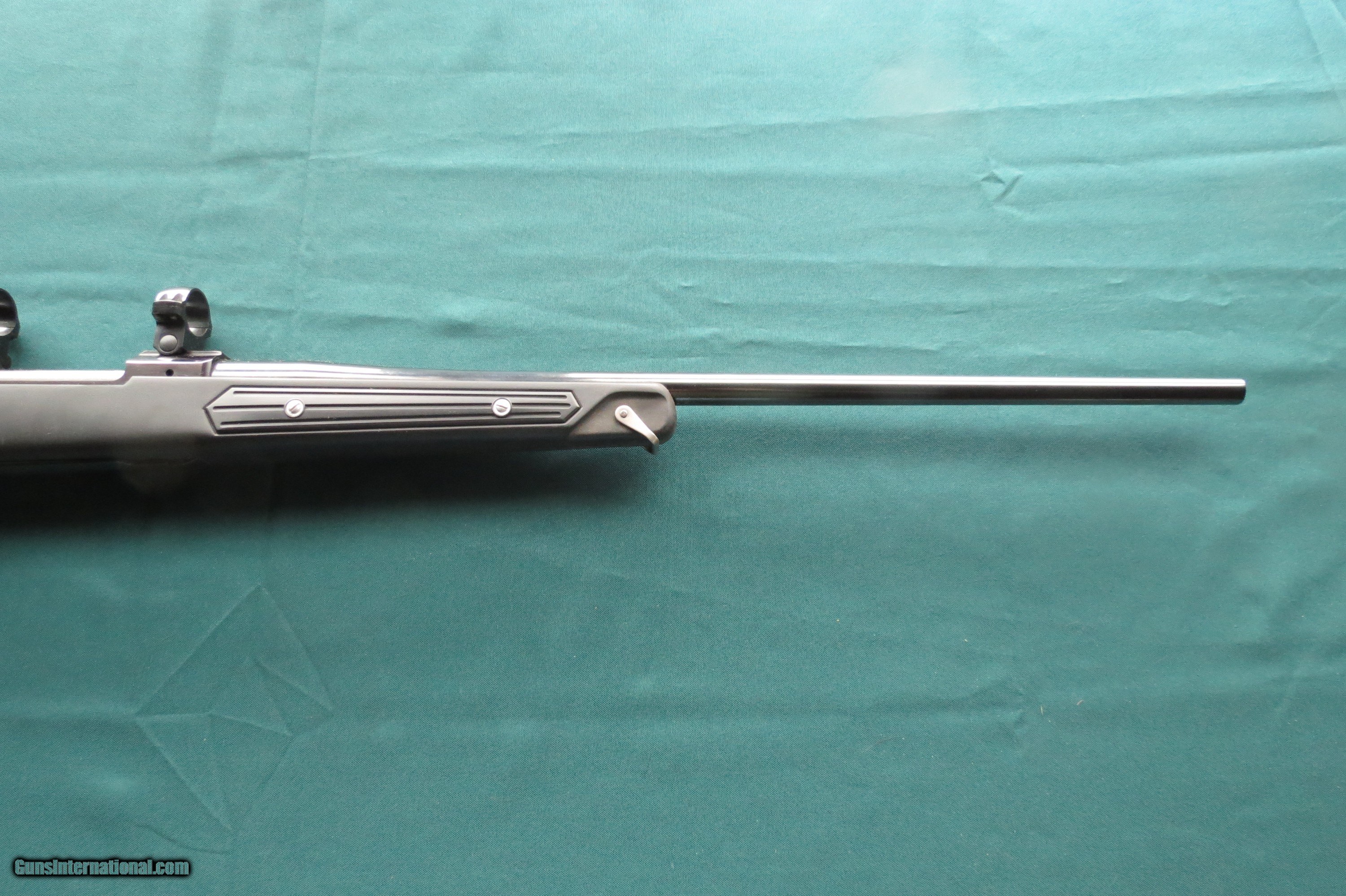 Description: Ruger Model M77RP Mark II in 7X57, acquired for origonal owner as unfired. Box included, 1" rings, Hinged Floorplate, Zytel skelton style stock, Sling swivel studs, 22" barrel. Rifle shows to be in new conditon. Rare Skelton stock w/Blued metal work in a rare caliber. Rifle was a special make up for distributer. Shipping/insurance $70 SOLD Rifle Caliber: 7x57mm Mauser Manufacturer: Ruger Model: M77RP Mark II Barrel Length: 22 Condition: As new in box |