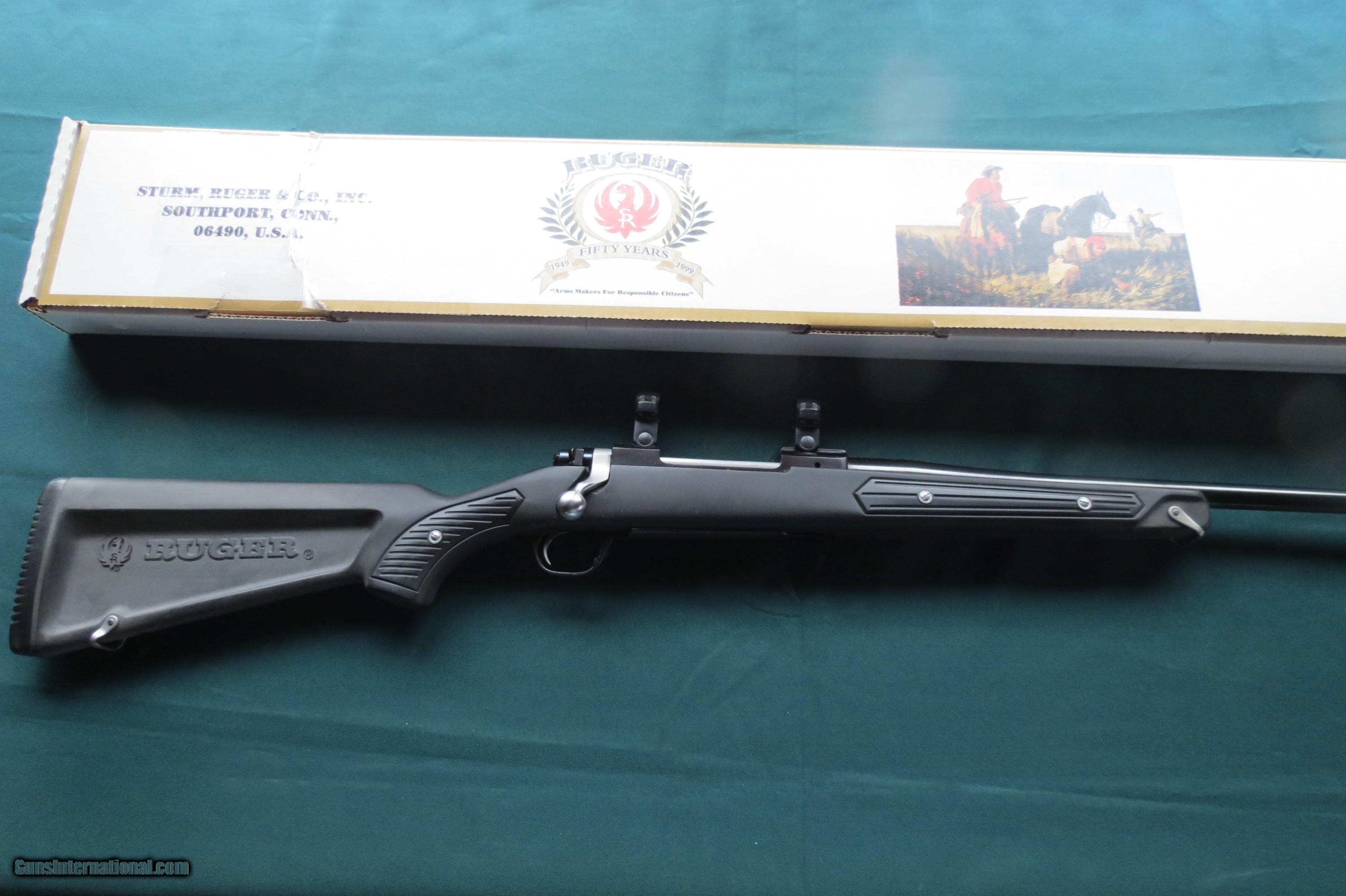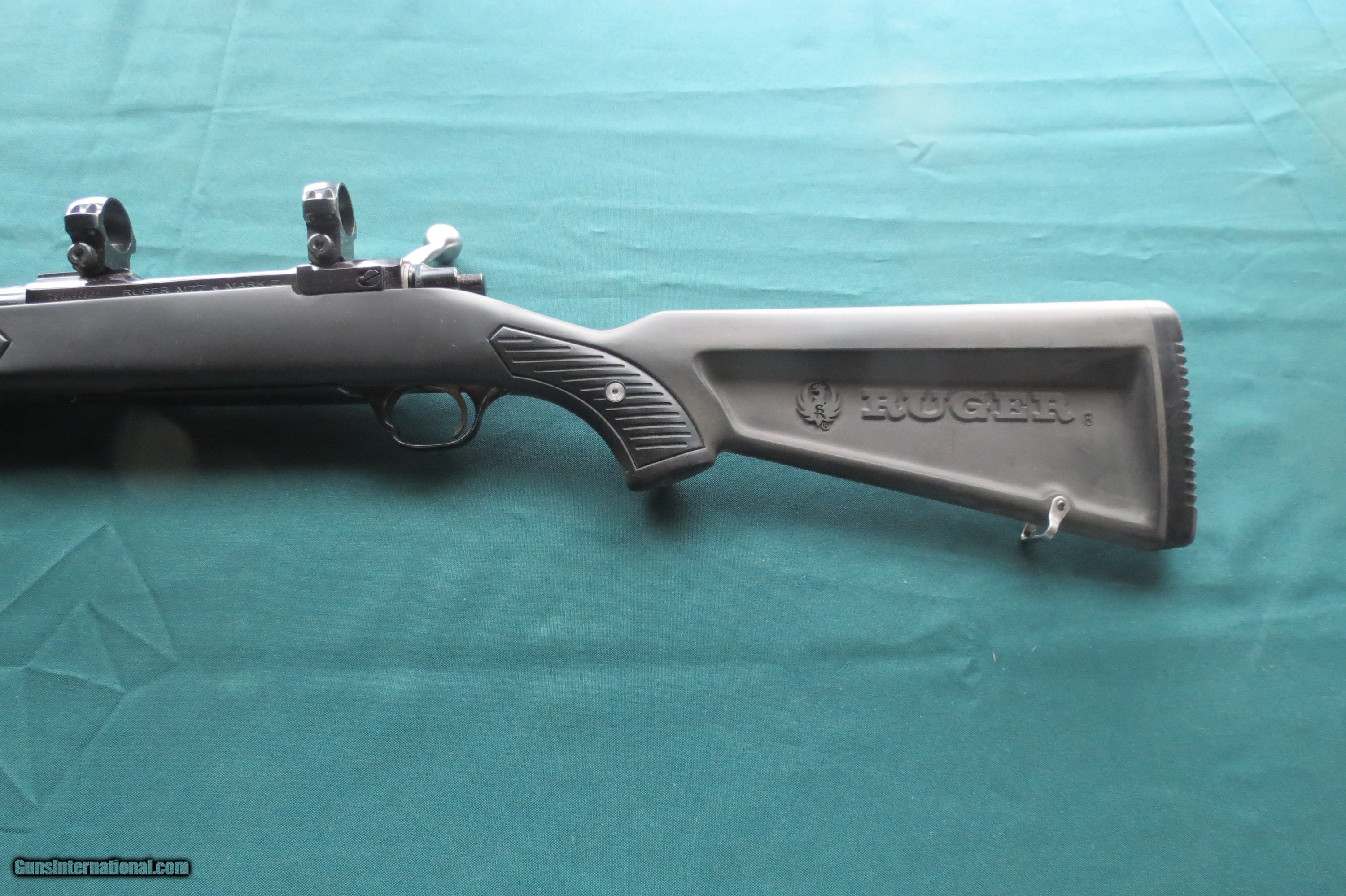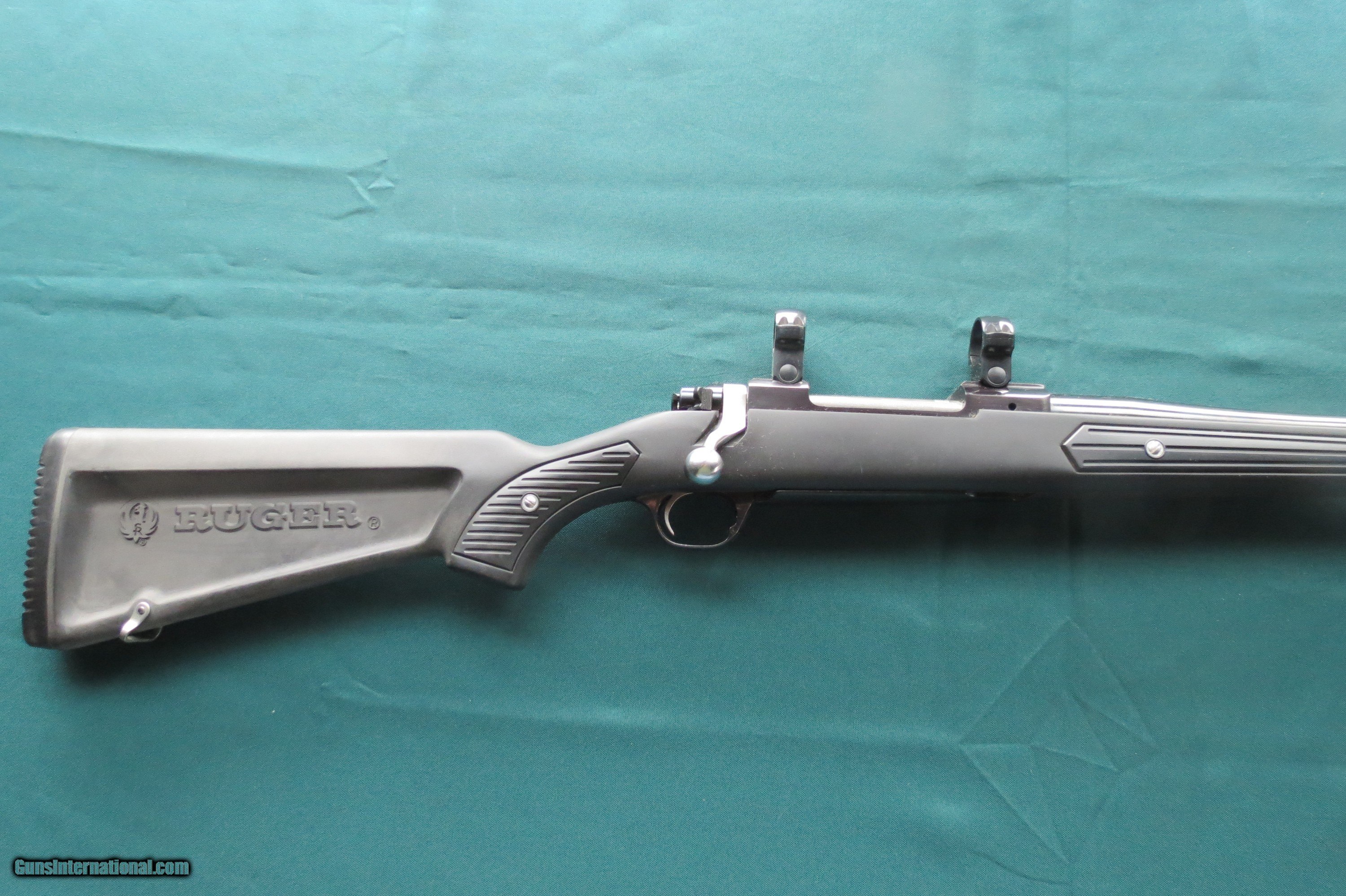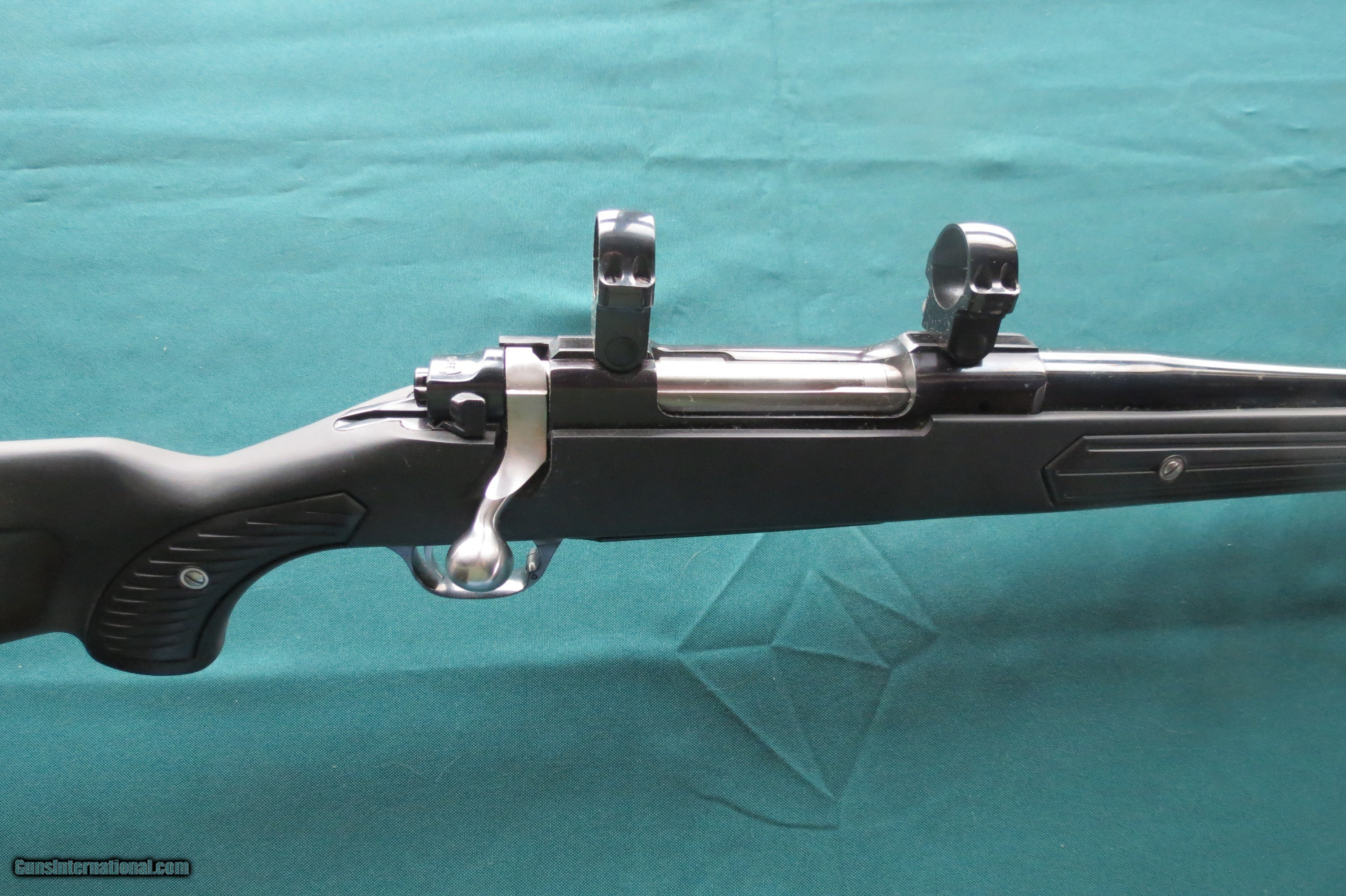 Description: Ruger Model M77RP Mark II in 7X57, acquired for origonal owner as unfired. Box included, 1" rings, Hinged Floorplate, Zytel skelton style stock, Sling swivel studs, 22" barrel. Rifle shows to be in new conditon. Rare Skelton stock w/Blued metal work in a rare caliber. Rifle was a special make up for distributer. Shipping/insurance $70 SOLD Rifle Caliber: 7x57mm Mauser Manufacturer: Ruger Model: M77RP Mark II Barrel Length: 22 Condition: As new in box |