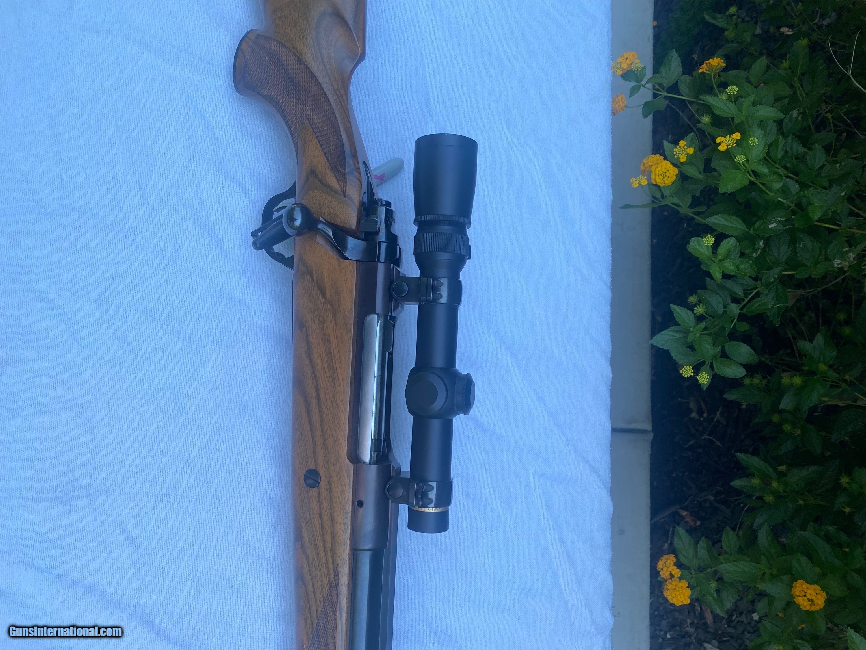 Description: Absolutely beautiful Ruger Safari Magnum in the hard hitting 416 Rigby outfitted with a lupold VX3 1-5. I chose this rifle for its outstanding factory custom stock. The fit and finish on this rifle shows pride in American craftsmanship. Thanks for looking. Price $2,400.00 SOLD Manufacturer: Ruger Model: Ruger Safari Magnum Bore: Excellent Condition: 99% Metal Condition: 99% Wood Condition: 99% Bore Condition: Excellent |