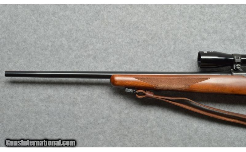 Description: SOLD Manufacturer: Modern manufacture. Caliber Info: .22 Long Rifle Chambers: Bolt action 10 round rotary magazine. Metal Condition: Bluing on barrel and receiver is excellent. Wood Condition: Pistol grip stock is free of damage and has a very nice satin finish. Bore Condition: Clean, very good bore. Barrels: 20 inch round blued barrel. Triggers: Single stage trigger. Stock: 13 1/4 inch LOP. Stock Dimensions: Beautiful satin finish walnut stock with checkered pistol grip and fore-end. Fore End: Checkered fore end. Butt Pad: Black synthetic butt pad. Weight: 6.85 pounds. Sights: 4x32 scope with duplex reticle. Item Location: Berlin, MA |