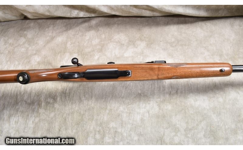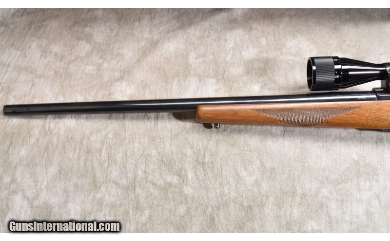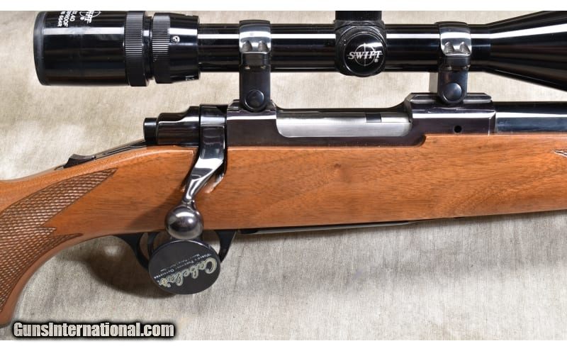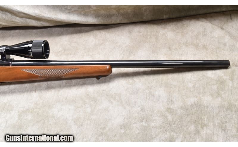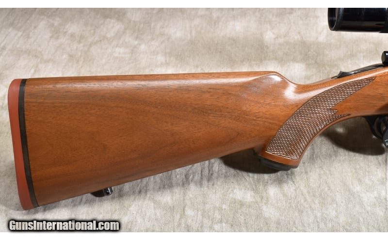 Description: This M77 from 1978 features a tang safety, nice walnut stock, mid-weight barrel, and internal box magazine with hinged floor plate. .22-250 Remington SOLD Chambers: 5 Metal Condition: Very good to excellent. Wood Condition: Very good to excellent. Bore Condition: Shiny and bright with good rifling. Barrels: "24-inches, 0.75 at the muzzle Triggers: Factory trigger. Stock Dimensions: 13-5/8 inch LOP. Fore End: Checkered walnut. Butt Pad: Rubber pad. Weight: 10 lb. Sights: Set up for scope and outfitted with a Swift 4-12x40mm scope. Item Location: Rogers |