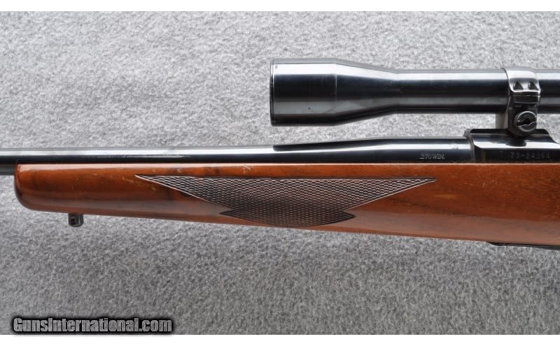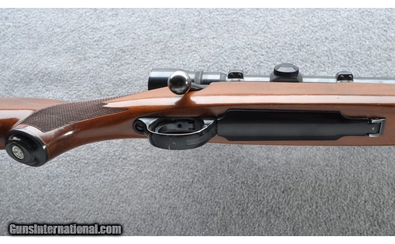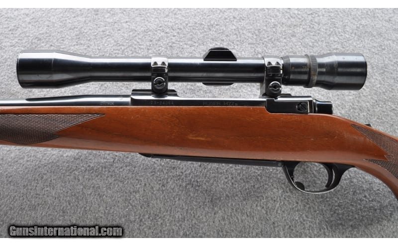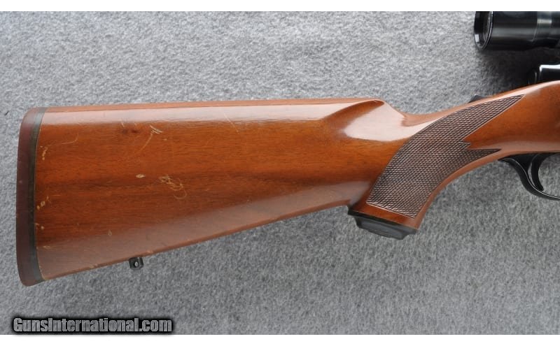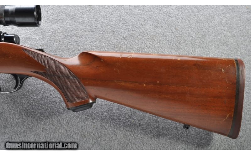 Description: This Ruger M77 Tang Safety model was made in 1978. .270 Winchester SOLD Chambers: .270 Winchester in a five round box magazine bolt action rifle Metal Condition: "Good, shows blue wear at the muzzle, trigger guard, bolt handle and sharp edges of the receiver Wood Condition: "Good, showing scattered marks, scratches & dents through the finish Bore Condition: Bright & sharp rifling Barrels: 22 Triggers: Single Stock Dimensions: 13 5/8" LOP Fore End: Checkered point pattern walnut with sling stud Butt Pad: Ruger red rubber Weight: 8 lbs. 14 oz. Sights: "No sights, fitted with a Weaver 3-9 Scope in Ruger rings Item Location: Grand Junction, CO |