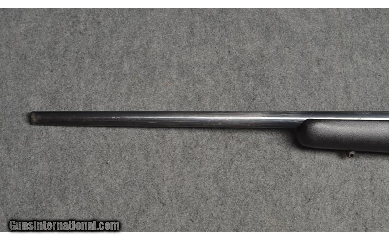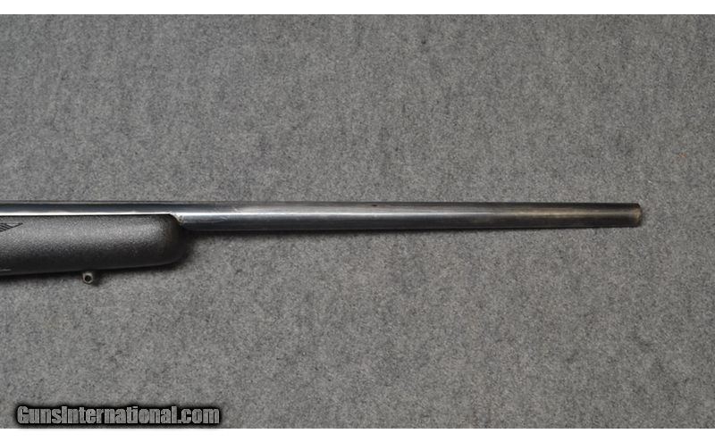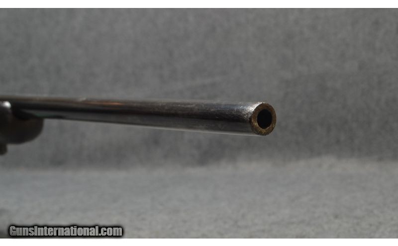 Description: This bolt action rifle is a Sturm Ruger M77 chambered for .30-06 Springfield. This rifle features a stainless bolt with blued bolt handle and cocking mechanism, a checkered synthetic stock, and ruger scope rings. This rifle is in overall fair-good condition, with very mild surface rust near the ejection port on the receiver and under the barrel where it meets the stock. There is a good amount of finish loss to the outside of the barrel and the knob on the bolt handle, but no visible pitting. Comes with soft case and fabric sling, and a Leupold M8 fixed 4x rifle scope. .30-06 Springfield SOLD Metal Condition: Overall fair condition Wood Condition: Overall good condition Bore Condition: "Bright and shiny, crisp rifling Barrels: 22in Stock Dimensions: 14in LOP Fore End: Checkered synthetic stock Butt Pad: 1in Ramline Arrestor recoil pad Weight: 7 lbs 13 oz Sights: Leupold M8 fixed 4x scope Item Location: Wichita, KS |