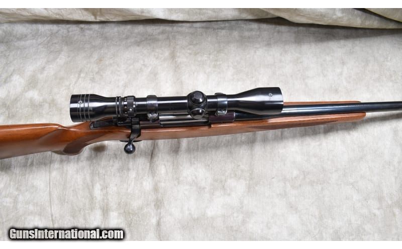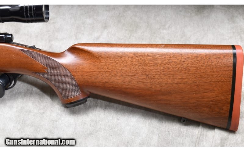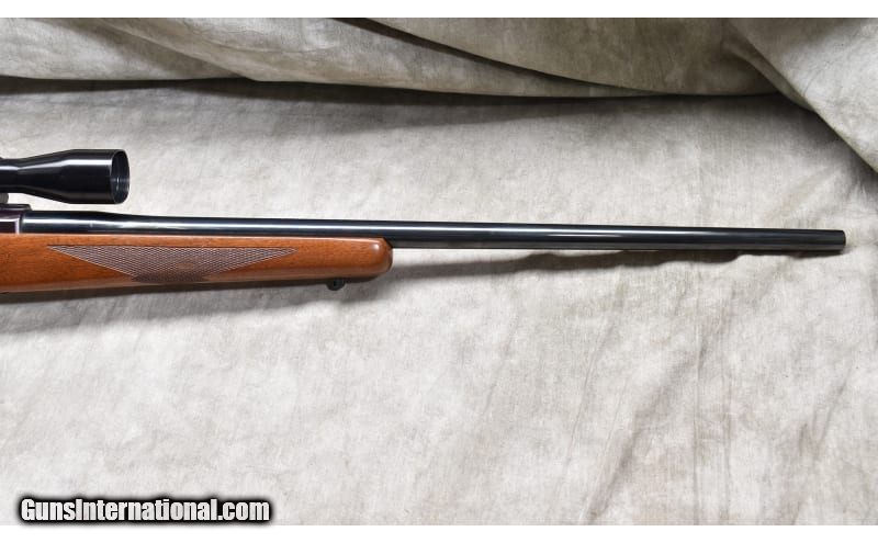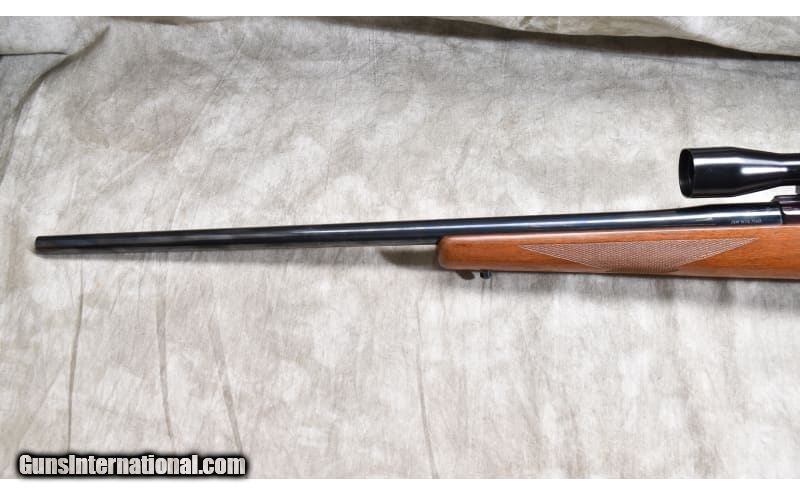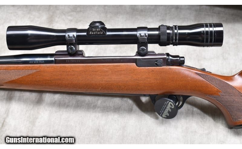 Description: This M77 was manufactured in 1981 and features the tang safety, Mauser claw extractor, and a nice walnut stock. The barrel has one small ding and the stock has a few shallow handling marks. .300 Winchester Magnum SOLD Chambers: 3 rounds Metal Condition: Very good. Wood Condition: Very good. Bore Condition: Shiny and bright with good rifling. Barrels: 24-inch Triggers: Factory trigger. Stock Dimensions: 13-5/8 inch LOP. Butt Pad: Red rubber pad. Weight: 8 lb - 14 oz Sights: Set up for scope and outfitted with a Redfield 3x-9x Item Location: Rogers |