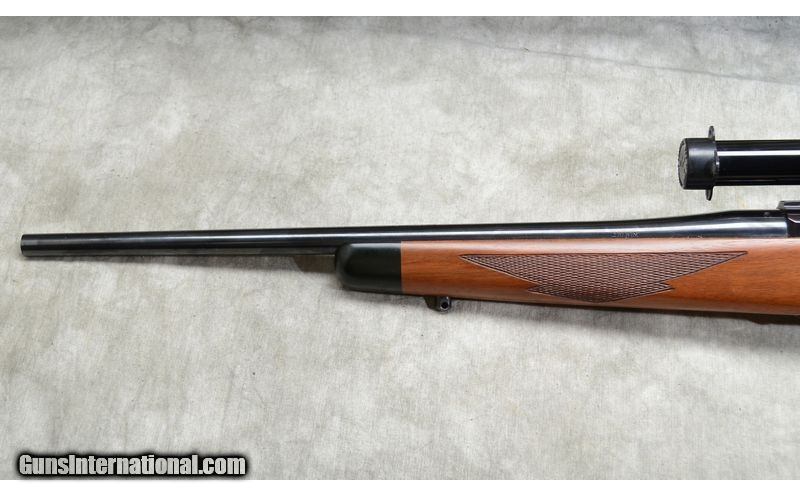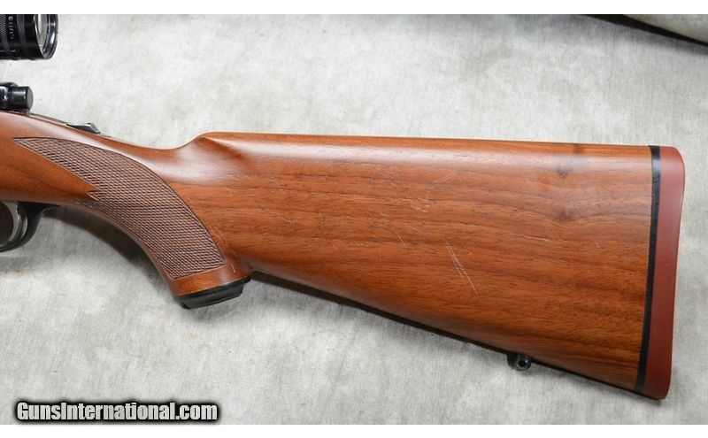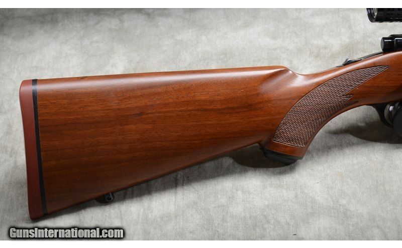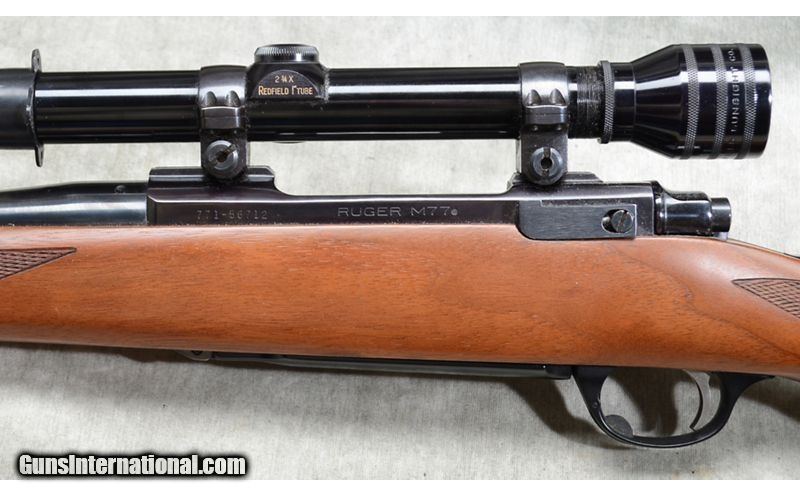 Description: The Ruger M77 Compact rifle features nice wood, and well-maintained metal. The overall short (carbine-length) 37-3/4 inch length was in part due to the short barrel and also to the location of the action back on the stock. The sporting arm equivalent of Col. Cooper's Scout Rifle. .270 Winchester SOLD Chambers: 4 Metal Condition: Excellent. Wood Condition: Very good. One scratch on the stock. Bore Condition: Shiny and bright. Barrels: 17-1/2 inch Triggers: Factory trigger. Stock Dimensions: 13-1/4 inch LOP. Butt Pad: Rubber pad. Weight: 7 lb - 2 oz Sights: Set up for scope and outfitted with a Redfield fixed 2-3/4 x scope. Item Location: Rogers |
