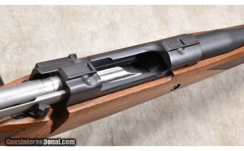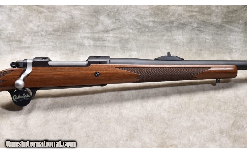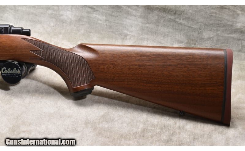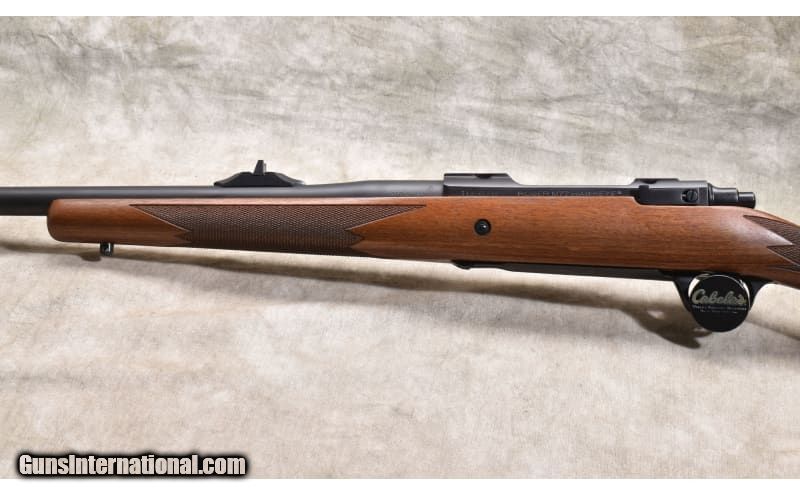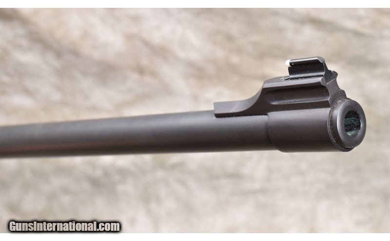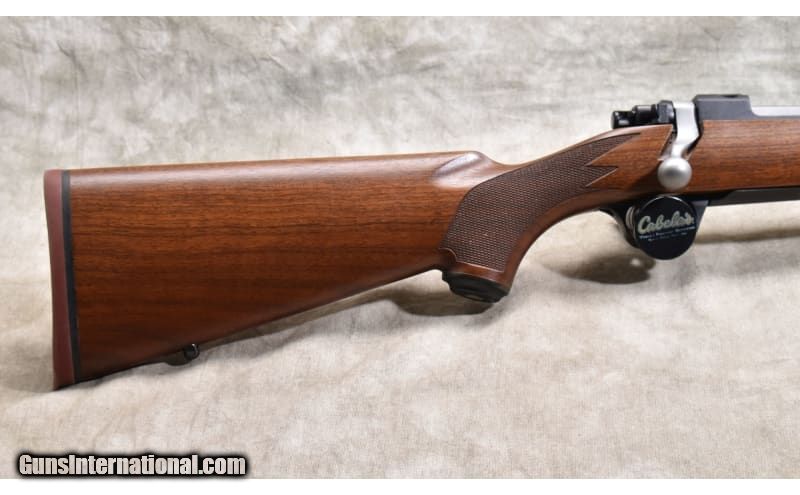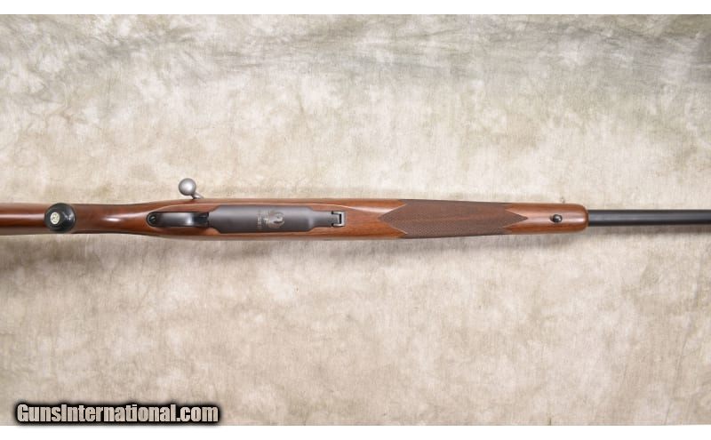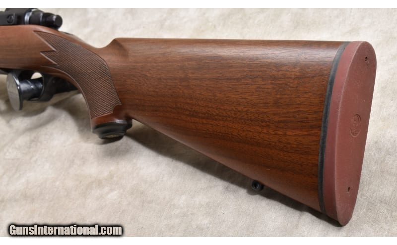 Description: This M77 Hawkeye is near flawless and made for the hunting of large, dangerous game. It is designed to provide an increase in performance over the .375 H&H cartridge, yet to be chambered in a standard-length action rifle. The .375 Ruger is great for buffalo and the biggest bears, and with lighter, faster bullets, can be used effectively for elk and moose and the full range of African plains game. .375 Ruger SOLD Chambers: 3 Rounds. Metal Condition: Like new. Wood Condition: Like new. Bore Condition: Like new. Barrels: 24 Inches Triggers: Factory LC6 trigger. Stock Dimensions: LOP: 13.5 Inches. Fore End: American walnut. Butt Pad: Red rubber. Weight: 7lbs 12 oz Sights: "Shallow ""express-style"" windage-adjustable ""V"" notch rear sight and white front bead. Integral scope mounts, machined directly on the solid-steel receiver Item Location: Rogers |
