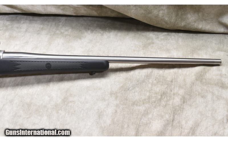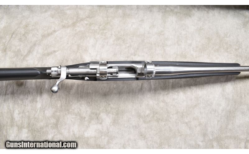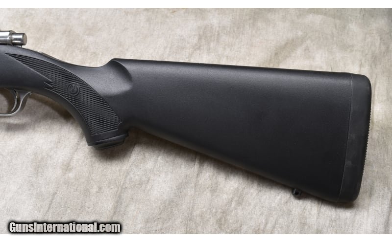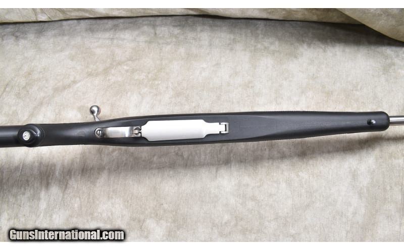 Description: Very nice little rifle at an overall length of 42 inches. It features satin stainless steel and black synthetic construction for all-weather usage. The bolt has a Mauser claw extractor, dog leg handle, and the internal magazine has a hinged floor plate. It does not appear to have been fired much if at all. .223 Remington SOLD Chambers: 5 rounds Metal Condition: Very good to excellent. Several very tiny marks on the floor plate. Wood Condition: Excellent. Bore Condition: Shiny and bright with good rifling. Barrels: 22-inch satin stainless steel Triggers: Factory trigger. Stock Dimensions: 13-5/8 inch LOP. Butt Pad: Soft rubber pad. Weight: 7 lb - 6 oz Sights: Set up for scope. Item Location: Rogers |