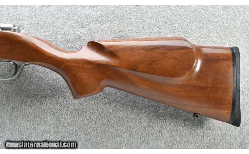 Description: This Ruger M77 MK II was shipped in 2000 and carries a Boyds Monte Carlo stock .300 Winchester Magnum SOLD Chambers: .300 Winchester Magnum in a three round box magazine bolt action rifle Metal Condition: Very good Wood Condition: "Good, shows a few field marks Bore Condition: "Very good, bright and sharp Barrels: 24" Stainless Steel Triggers: Adjustable Stock Dimensions: 13 3/4" LOP Boyds stock Fore End: Plain walnut with grasping grooves and sling stud Butt Pad: Boyds rubber Weight: 8 lbs. 10 oz. Sights: "No sights, fitted with integral scope bases and Ruger 1"" rings Item Location: Grand Junction, CO |