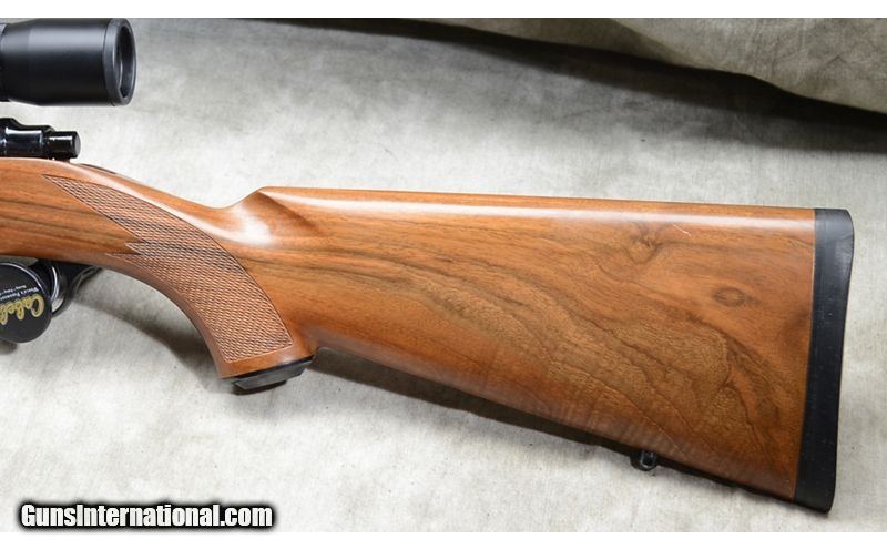 Description: Nice everyday rifle featuring figured walnut stock, tip and grip caps, hinged floor plate, and outfitted with 2-7x Prostaff scope. .30-06 Springfield SOLD Chambers: 4 Metal Condition: Excellent. Wood Condition: Excellent. Bore Condition: Shiny and bright. Barrels: 22-inch. Triggers: Factory trigger. Stock Dimensions: 13-5/8 inch LOP. Fore End: Black tip cap. Butt Pad: Rubber pad. Weight: 8 lb - 5 oz Sights: Outfitted with Nikon Prostaff scope. Item Location: Rogers |