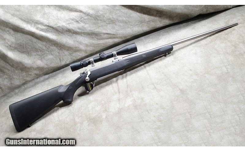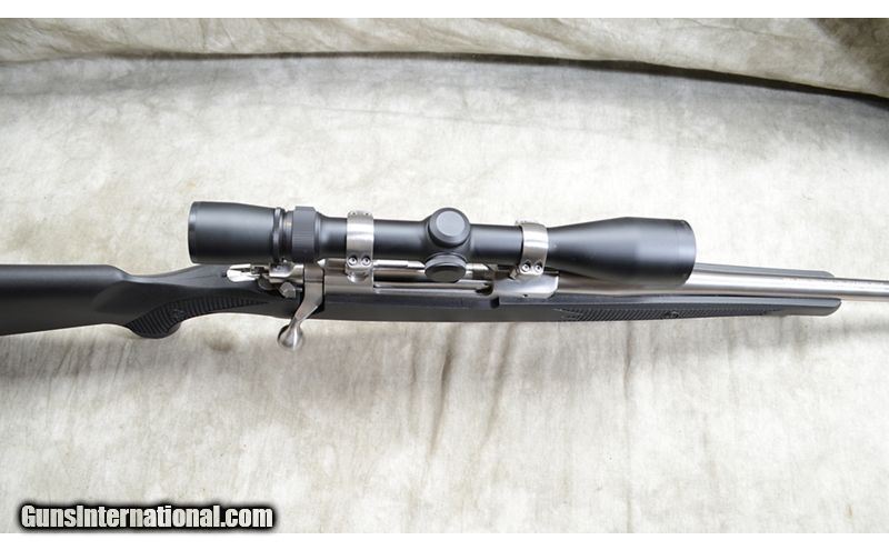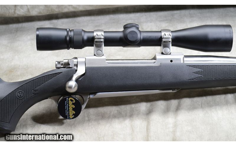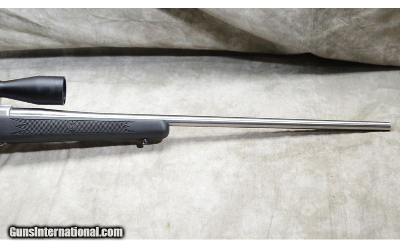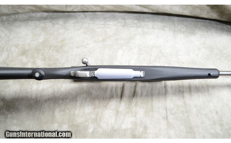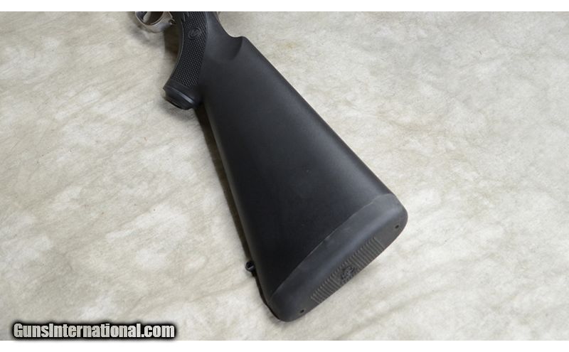 Description: An all-weather black synthetic and stainless steel rifle outfitted with a Weaver 3-9x scope. Features include hinged floor plate. 7mm Remington Magnum SOLD Chambers: 4 Metal Condition: Excellent. Wood Condition: Excellent. Bore Condition: Shiny and bright with good rifling. Barrels: 24-inch satin stainless. Triggers: Factory trigger. Stock Dimensions: 13-3/4 inch LOP. Butt Pad: Soft rubber pad. Weight: 8 lb - 5 oz Sights: Weaver scope Item Location: Rogers |