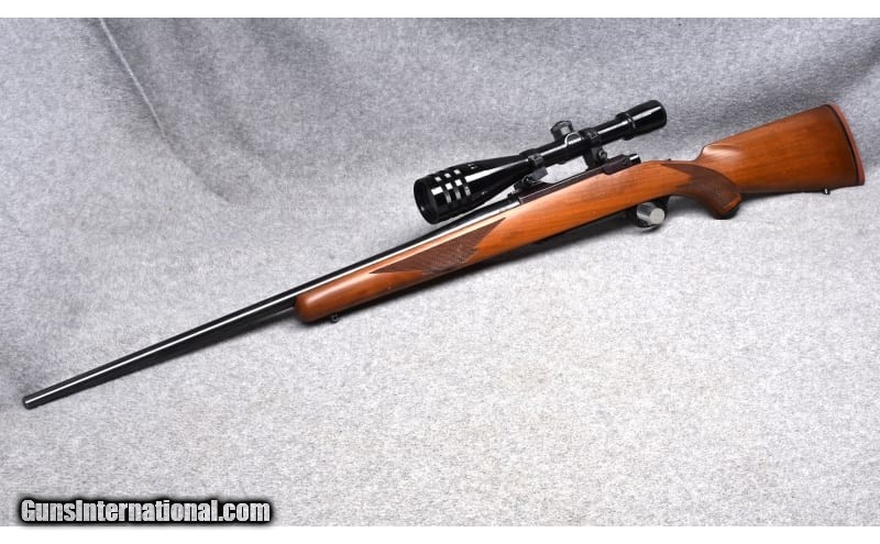 Description: 1971 DOM, 41 3/8" OAL 13" LOP, Tang Safety. .22-250 Remington SOLD Metal Condition: Excellent Wood Condition: Excellent Bore Condition: Bright and Shiny Barrels: 22 inches Stock Dimensions: Shortened Butt Pad: Ruger Red Pad Weight: 8.5 lbs. Sights: Weaver 15x Item Location: Reno |